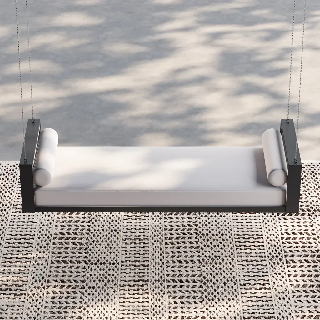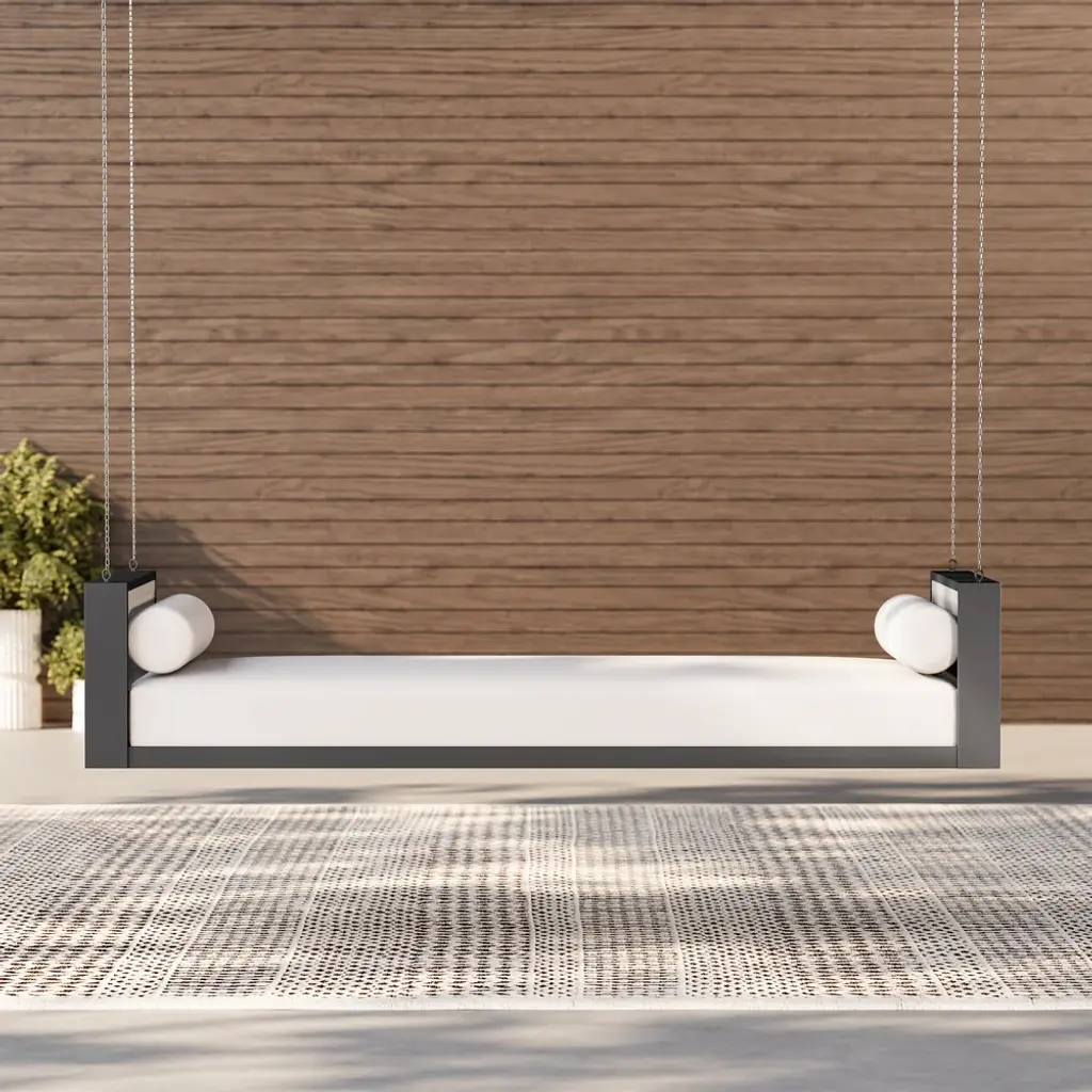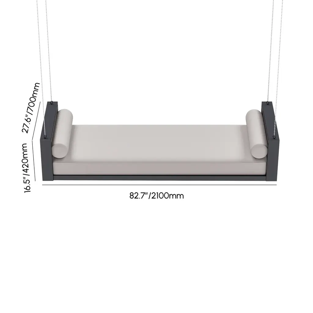 Relax in style with this premium outdoor swing daybed featuring a durable aluminum frame and handwoven rope accents. Includes 3 weather-resistant polyester cushions for ultimate comfort. The 110-inch hanging chains create a perfect lounging spot for porches, patios or gardens. Modern design meets all-weather durability.
