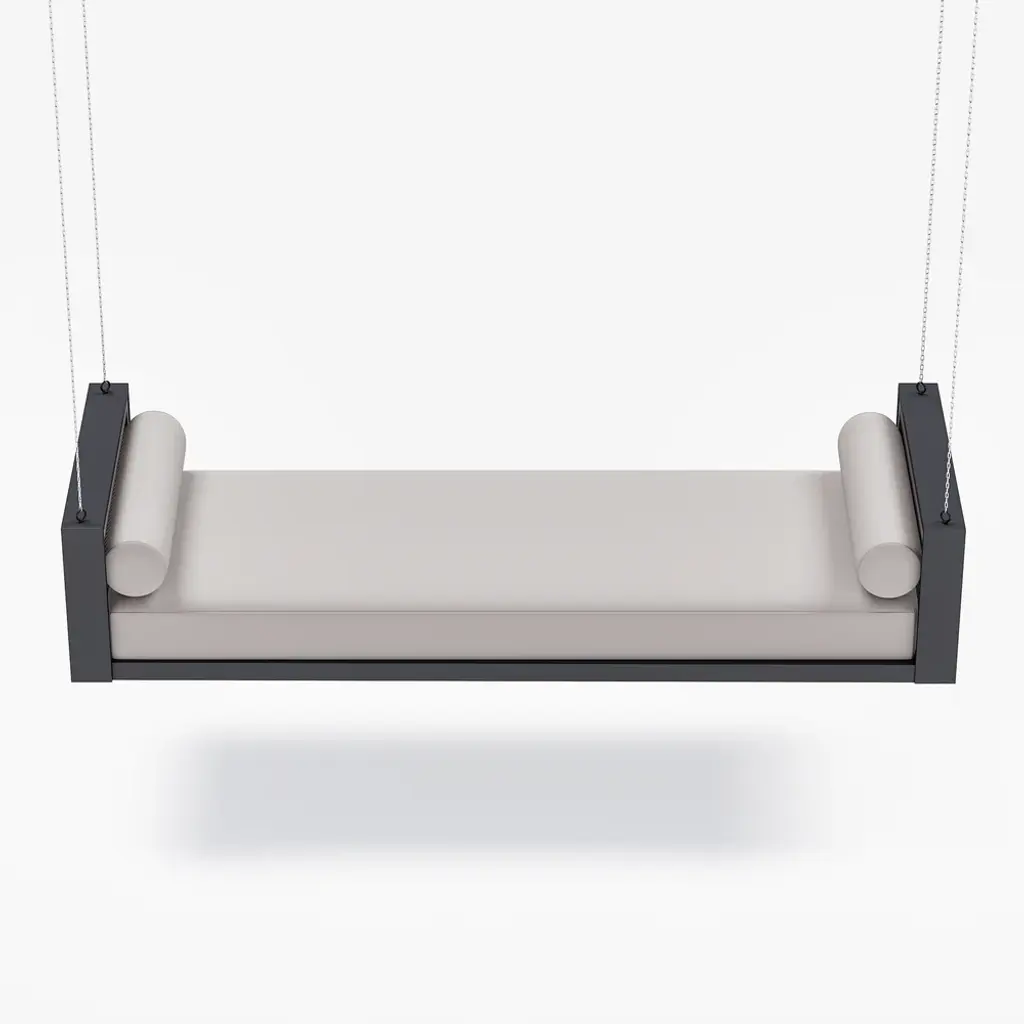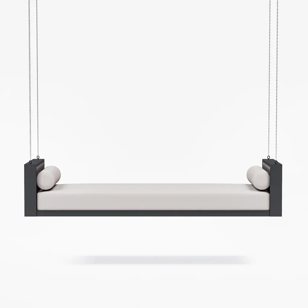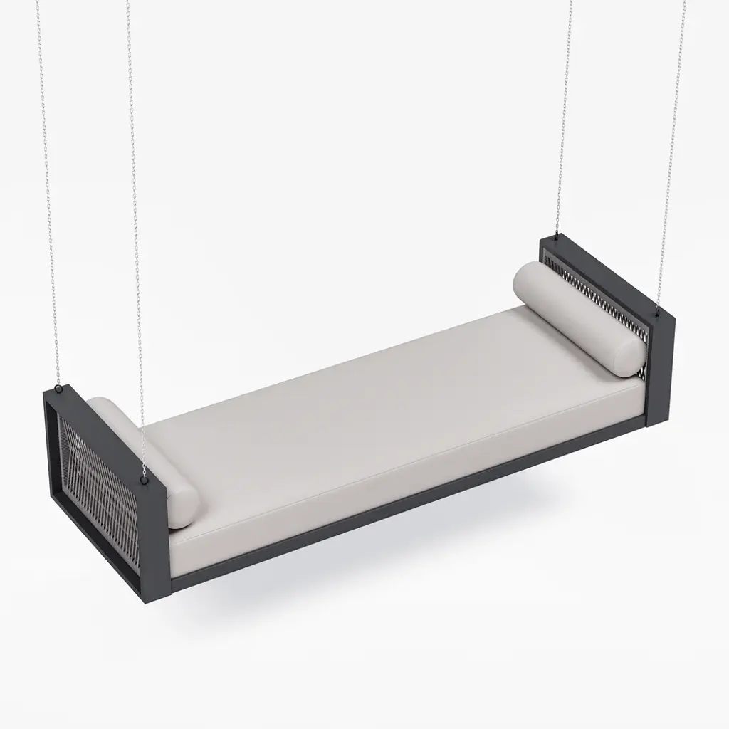 Relax in style with this premium outdoor swing daybed featuring a durable aluminum frame and handwoven rope accents. Includes 3 weather-resistant polyester cushions for ultimate comfort. The 110-inch hanging chains create a perfect lounging spot for porches, patios or gardens. Modern design meets all-weather durability.