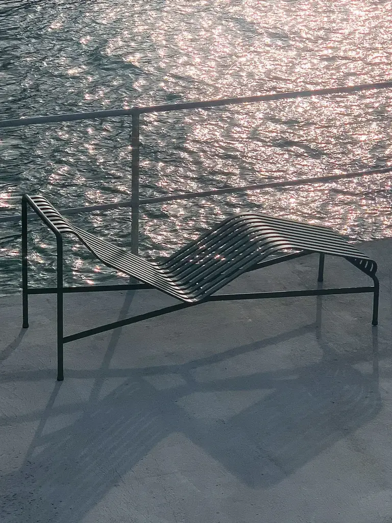 Designed by French brothers Ronan and Erwan Bouroullec, Palissade is a collection of outdoor furniture for HAY in powder coated or hot galvanised steel. United by a common principle of symmetrical geometry, the Palissade collection is engineered to reproduce the same visual simplicity and core strength throughout. Designed in colour and form to integrate effortlessly into a natural landscape or urban setting, Palissade is intended to be used over a longer period of time and become more beautiful over the years. The collection is suited to a wide variety of environments, from cafés and restaurants to gardens, terraces and balconies.Powder coated steel or hot galvanised steel. The products in the Palissade Collection have a two component coating; a primer and an outdoor powder coating which provides a barrier to corrosive elements making it suitable for outdoor use.Available in different finishes:- Anthracite powder coated steel (RAL 9011)- Sky grey powder coated steel (RAL 7038)- Olive powder coated steel (RAL 6003)- Hot galvanised steel- Iron red powder coated steel (RAL 8015)
