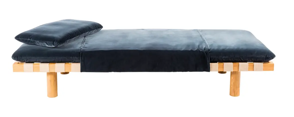The feather-light in response to massive reclining furniture is a reminiscence of Mediterranean culture of sleep. Sebastian Herkner's flat pallet daybed ( "cot") is suitable for the little nap in between, to brainstorm, to read, or just to rest. The frame consists of high-grade oak wood, suspension and cuff optionally made of leather or velvet. In different colors.