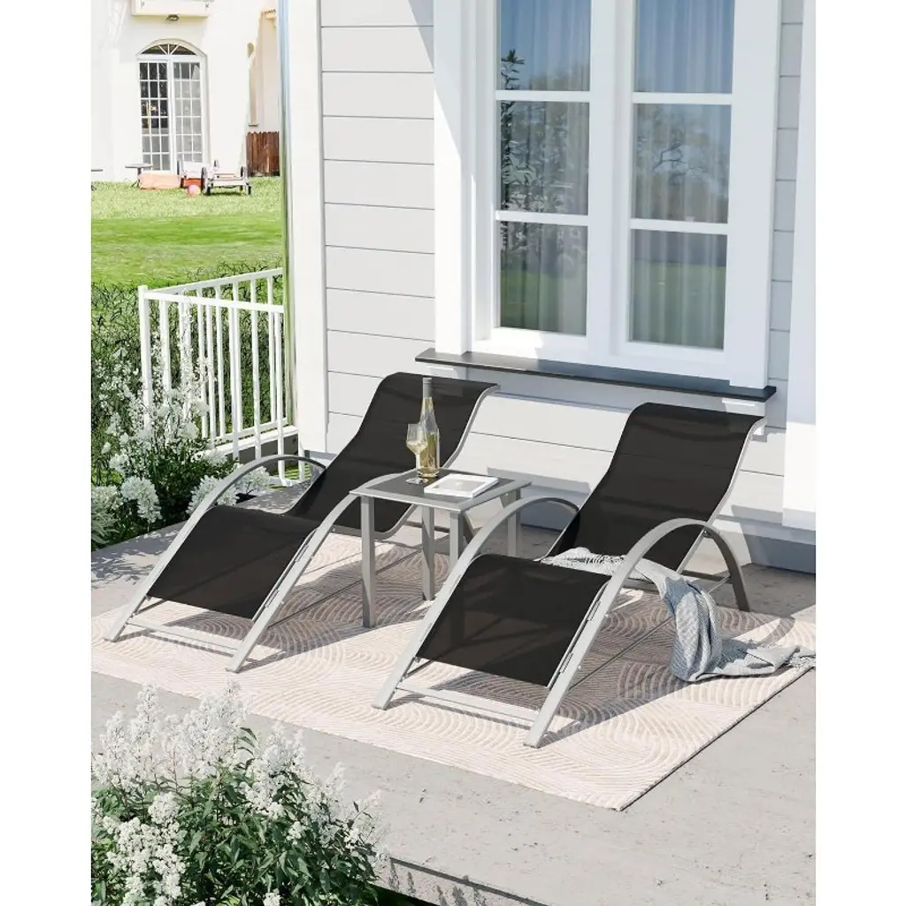 Patio Chaise Lounge Set Of 3, Outdoor Reclining Pool Chairs With Side Tables All-weather Sun Loungers For Poolside, Beach, Balcony, Black