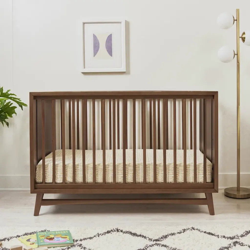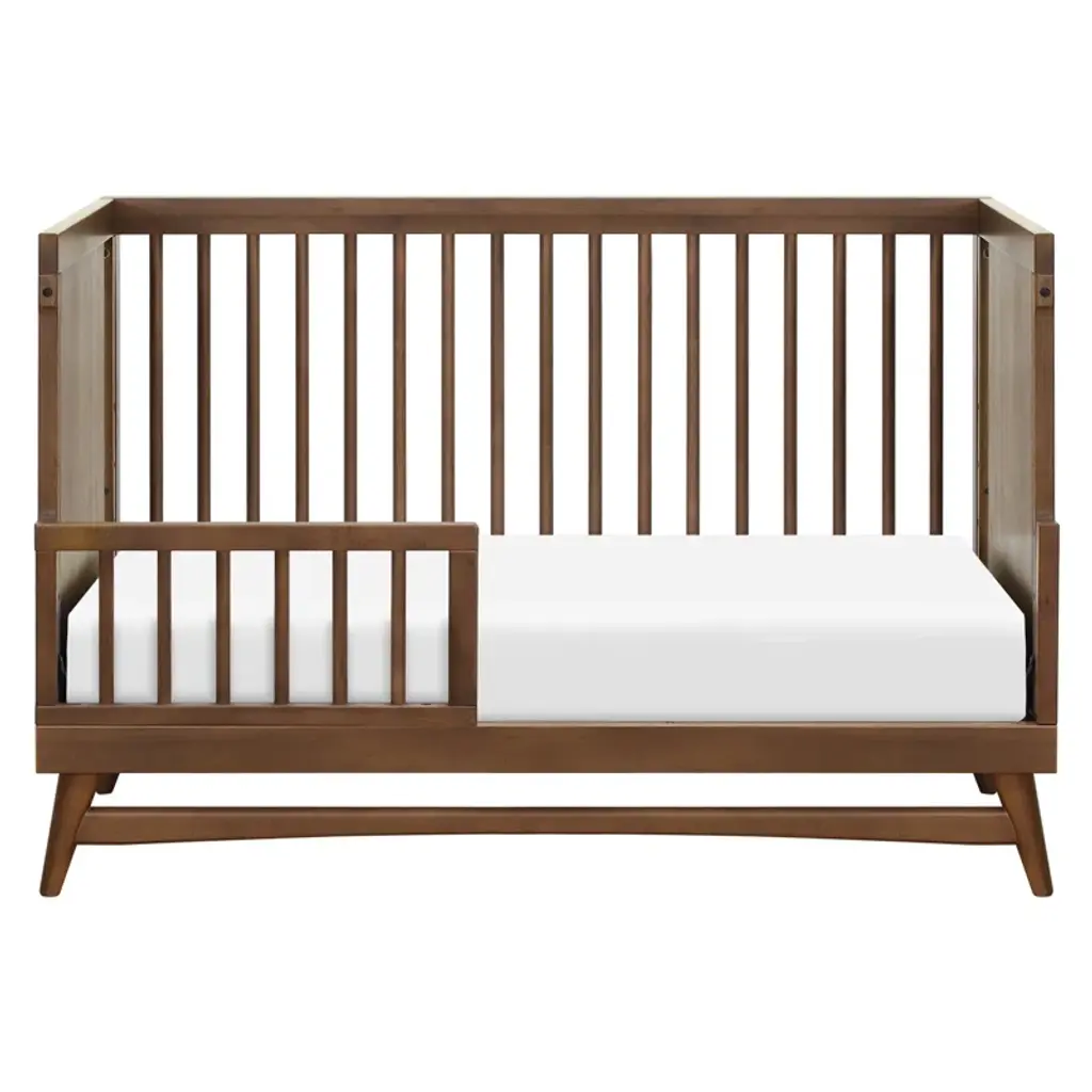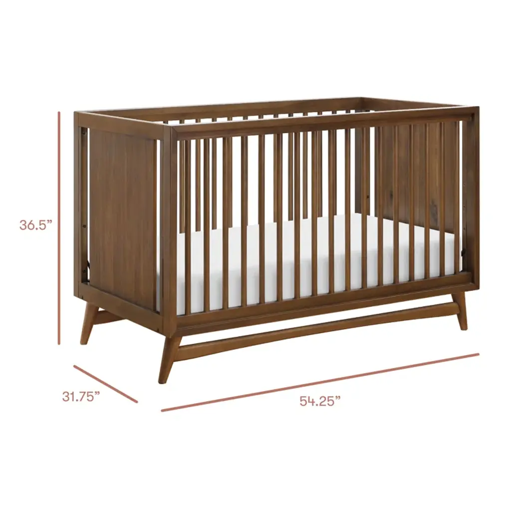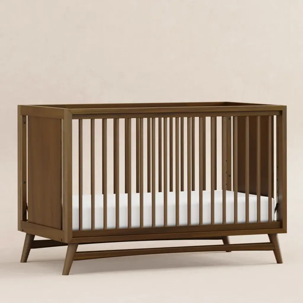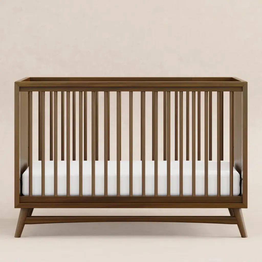 The Peggy 3-in-1 convertible crib encapsulates timeless mid-century modern design with its modern, clean silhouette and classic rounded spindles, while the flared tapered legs add a playful touch. The Peggy grows with your babe with an included toddler bed conversion kit allowing you to seamlessly convert from crib to toddler bed to daybed. Made with sustainable materials and Greenguard Gold certified for indoor air quality.