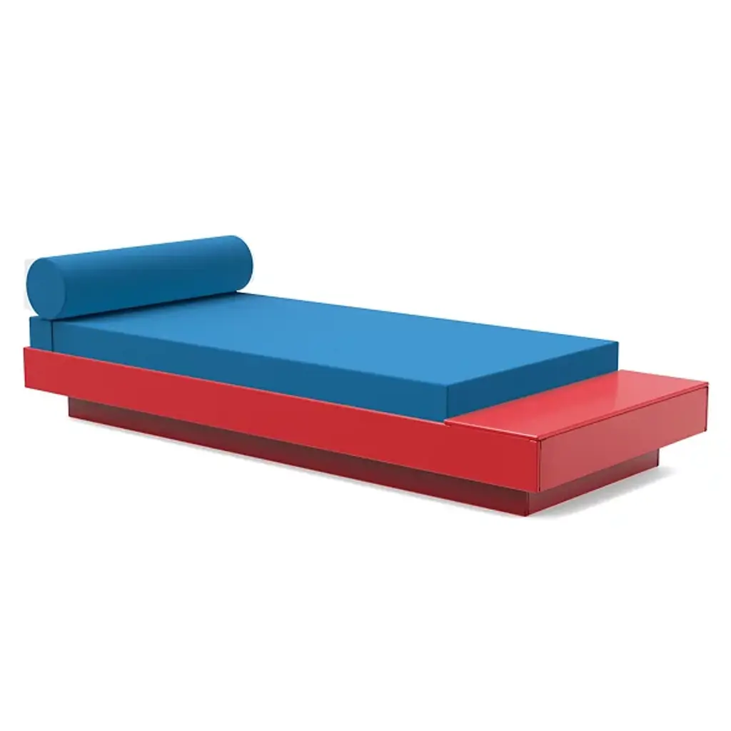 Experience the ultimate in outdoor relaxation with the Platform One Outdoor Daybed with Table featuring a built-in table by Loll Design, seamlessly blending modern elegance with unparalleled comfort. Luxuriate in the plush Sunbrella fabric cushions and customize your comfort with the adjustable bolster cushion, perfect for unwinding on your porch or patio with a captivating read or a revitalizing afternoon nap. Crafted from recycled High-Density Polyethylene (HDPE), this durable furniture endures all four seasons, guaranteeing year-round enjoyment while staying true to both style and sustainability.