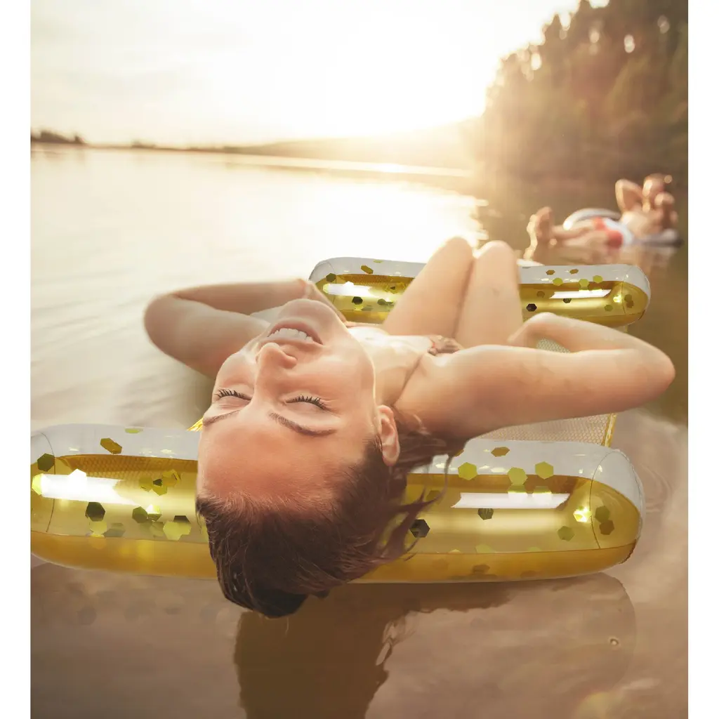 Poza Gold Inflatable Water Hammock Float Lounger Filled With Confetti - 56" X 30" - Gold - 56" X 30"
