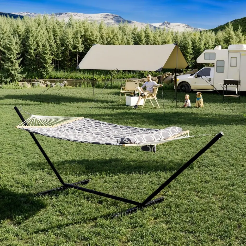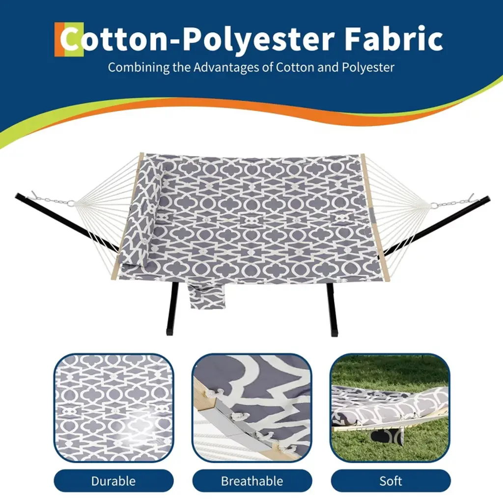 Premium 2-person Hammock Set With Quick-lock Steel Stand – Commercial-grade Outdoor Lounger For Patio, Camping & Backyard,light Gray