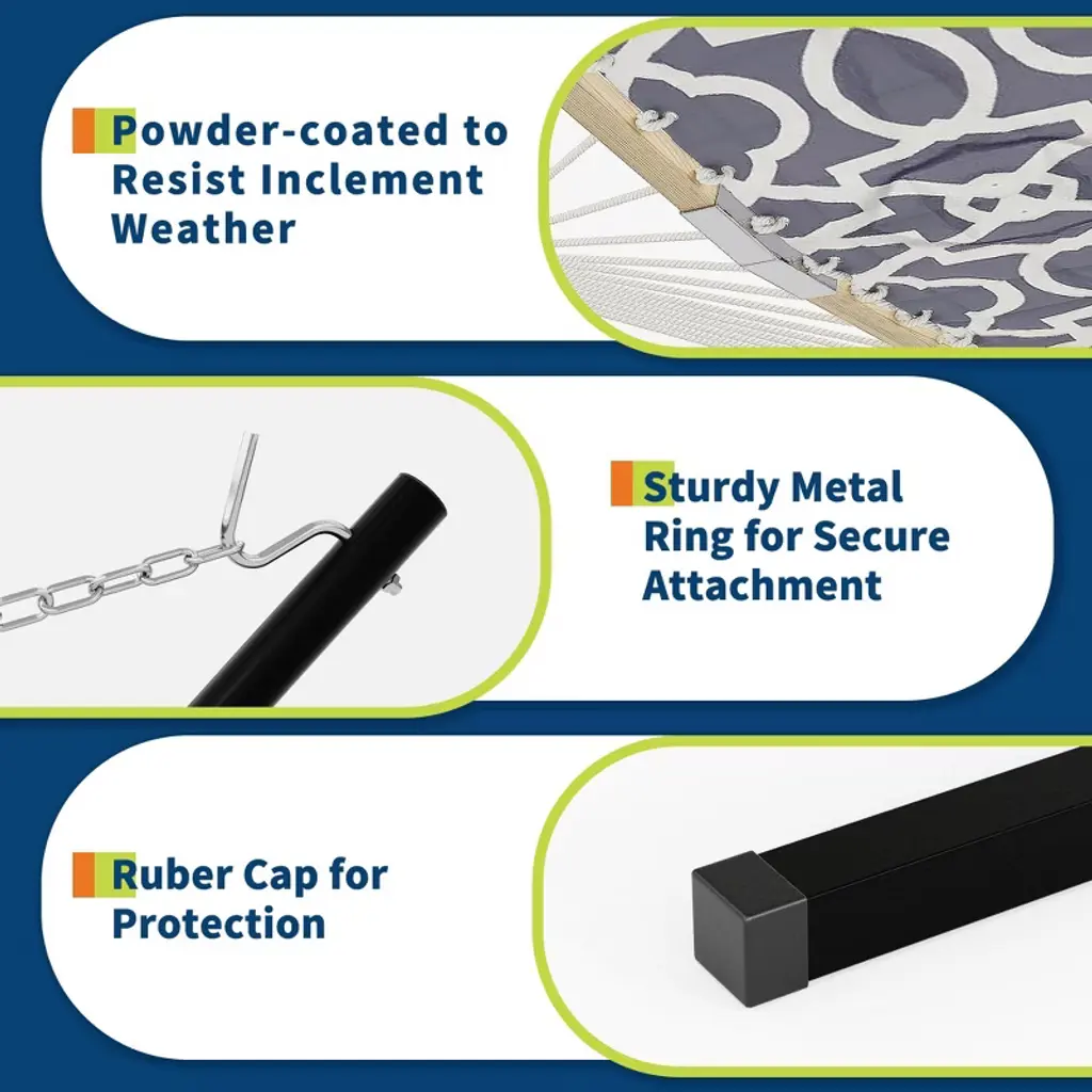 Experience ultimate relaxation with this luxury dual-lounger hammock, designed with breathable, quick-dry parachute fabric to comfortably accommodate two adults (up to 500 lbs) without sagging. Featuring a versatile height adjustment system and patented anti-flip design, it offers stability even in windy or uneven conditions. Assembly is quick and tool-free, with rust-proof steel tubes and protective features for various surfaces. Built to withstand extreme temperatures from -30°F to 130°F, this weatherproof hammock is perfect for any season or adventure.