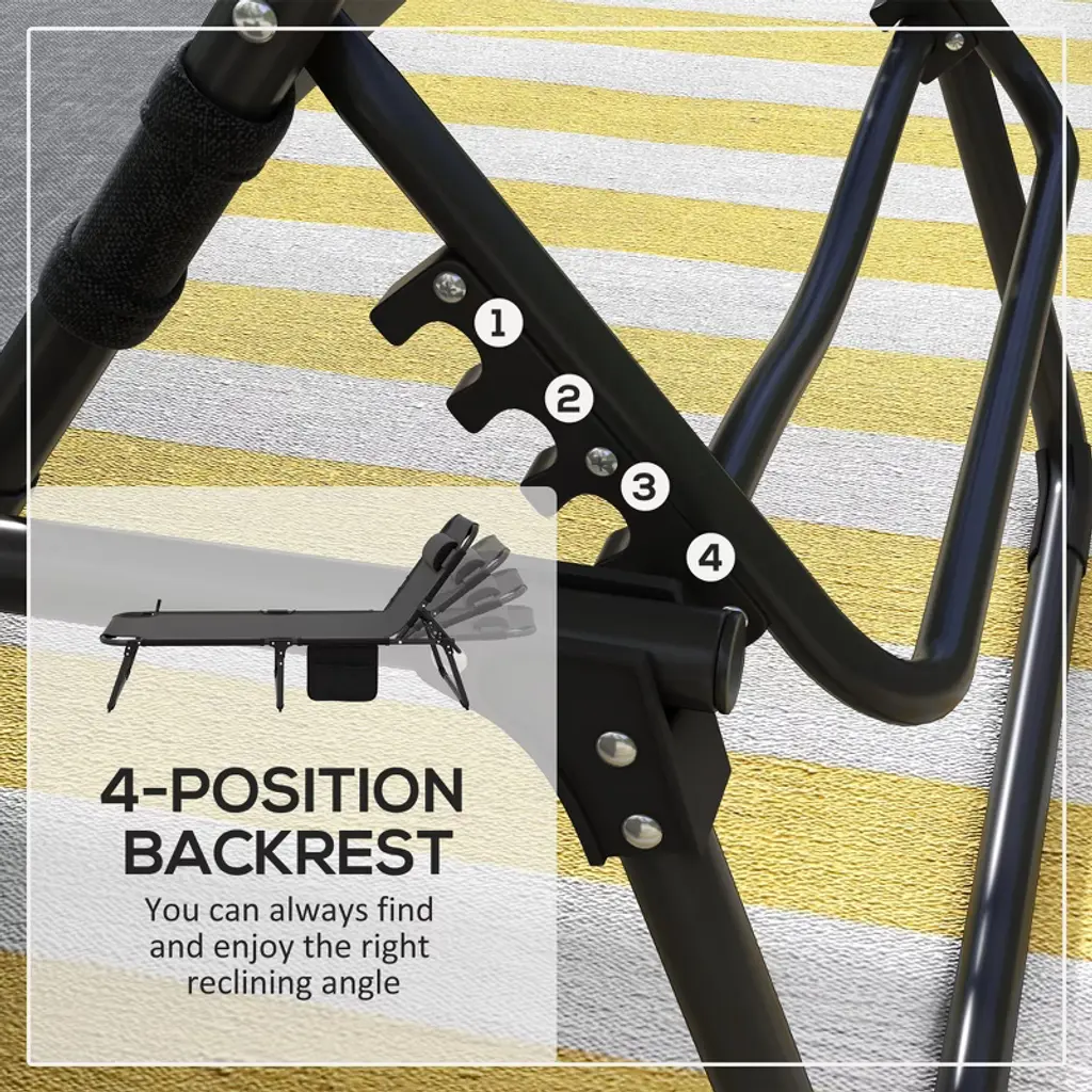 Racxily Outdoor Chaise Lounge Chair, Adjustable Folding Chaise Lounge With 4-position Backrest, Sun Bathing Lounger Chair For Patio, Beach, Gray