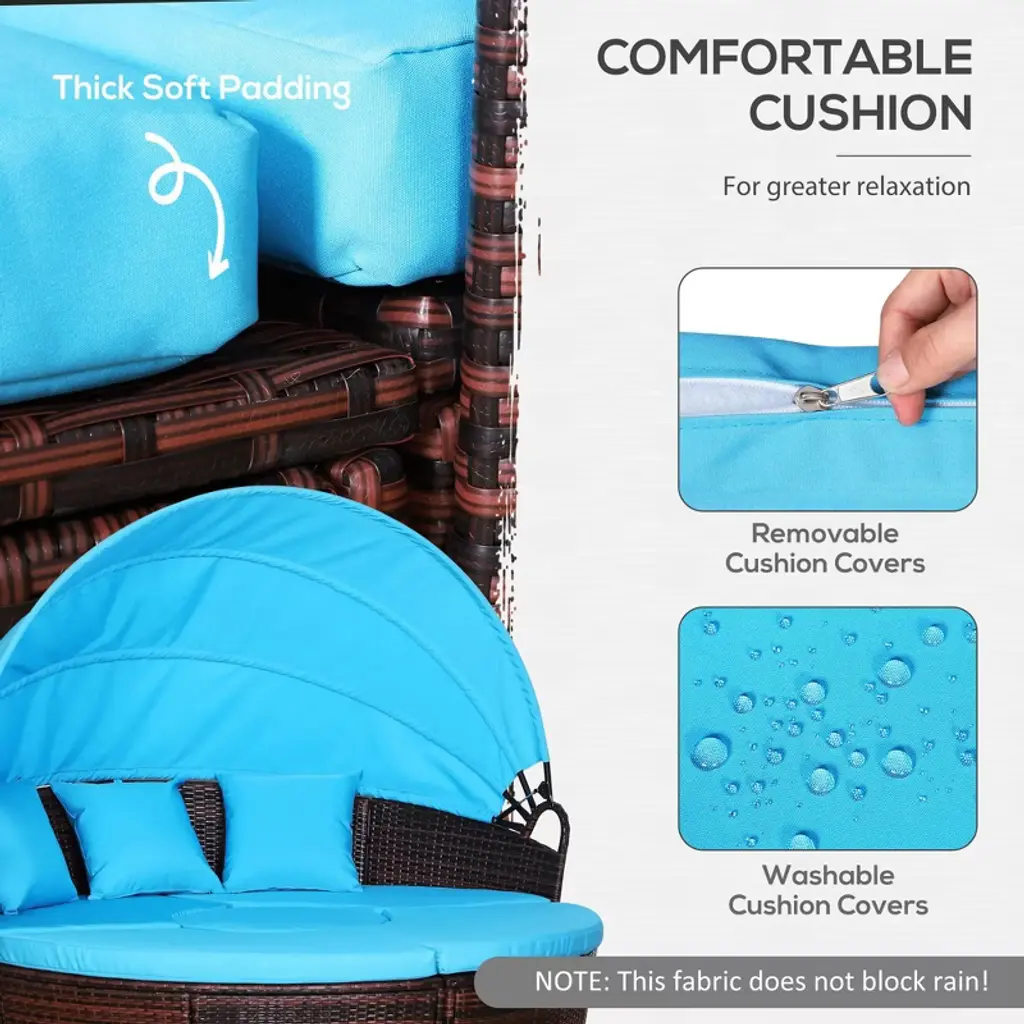 Resenkos 4-piece Cushioned Outdoor Rattan Wicker Sunbed Or Conversational Sofa Set, Blue