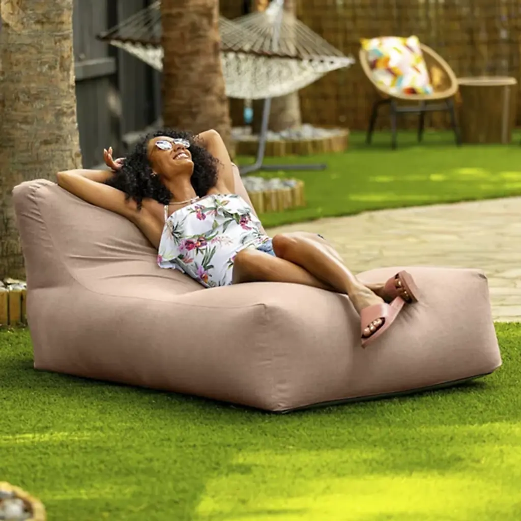 The Spazio Minos Outdoor Sun Lounger Fan from Spazio is an elegant and relaxed creation designed by Foam Labs. It features a rectangular base and a supportive back that swoops up for comfort. Surfaced in strong, weather-resistant Sunbrella fabric, its washable cover includes a child-proof zipper, ensuring it stays on even when subjected to wind and curious hands. The lounger is filled with soft beads and is Greenguard Certified, testifying to low chemical emissions in its creation. Ideal for gentle and comfortable outdoor relaxation, its concealed inner structure means it is both soft and durable.