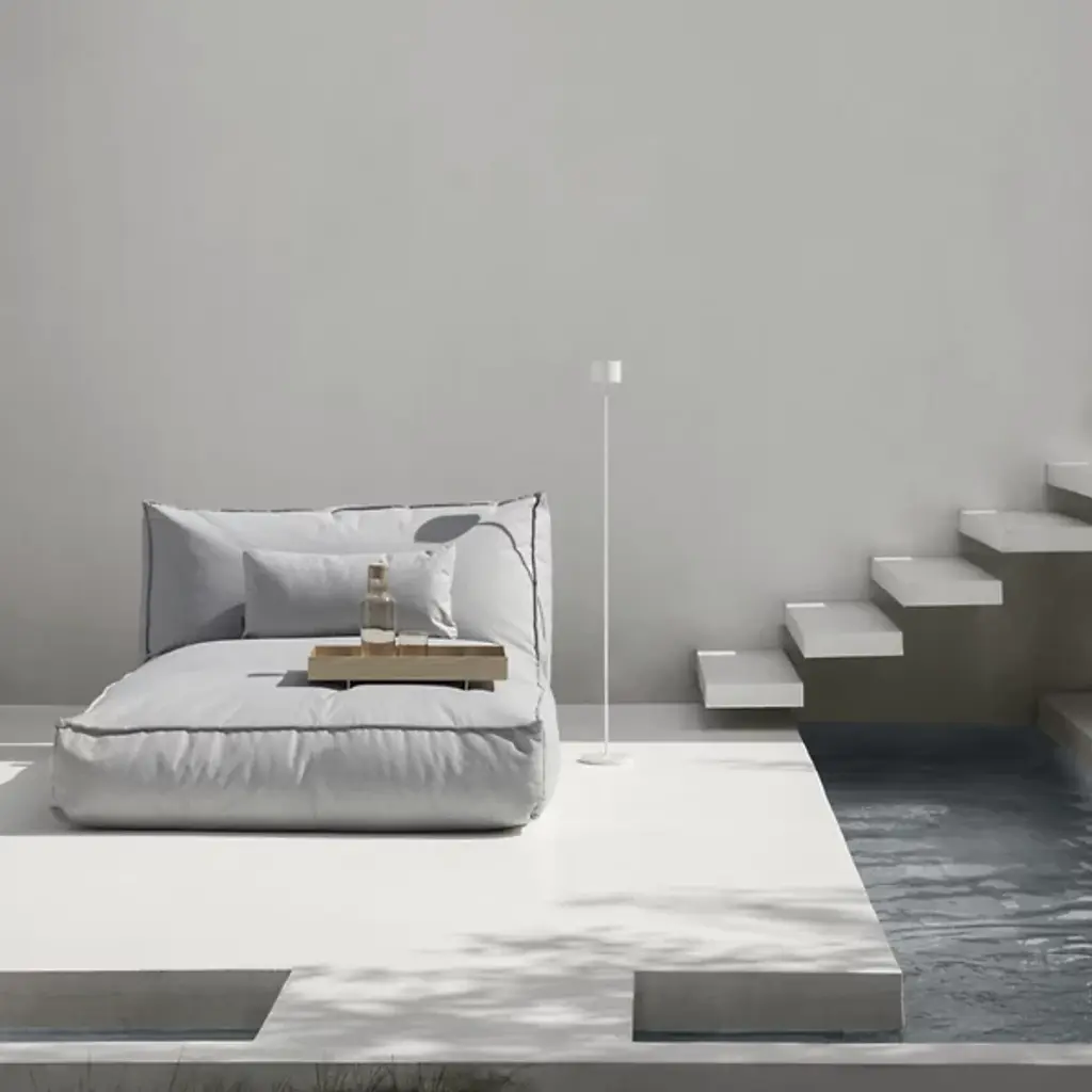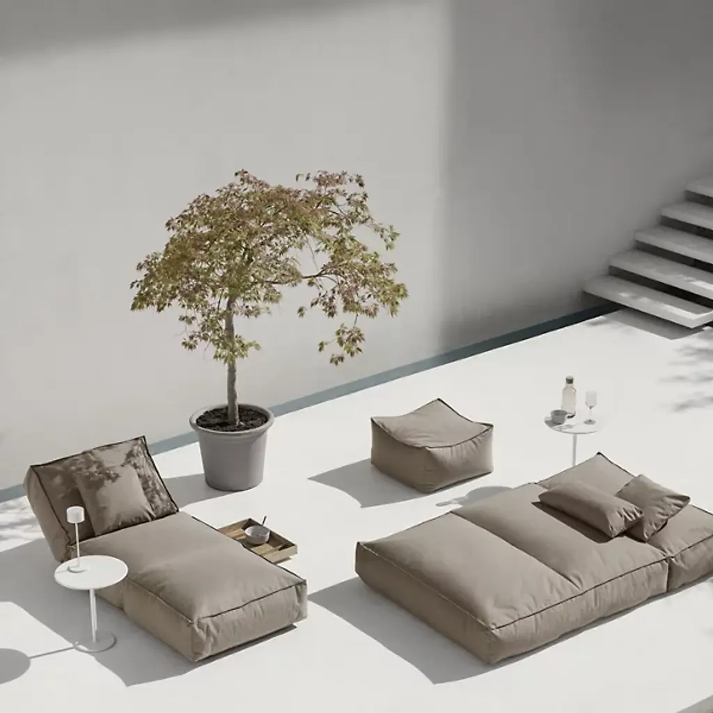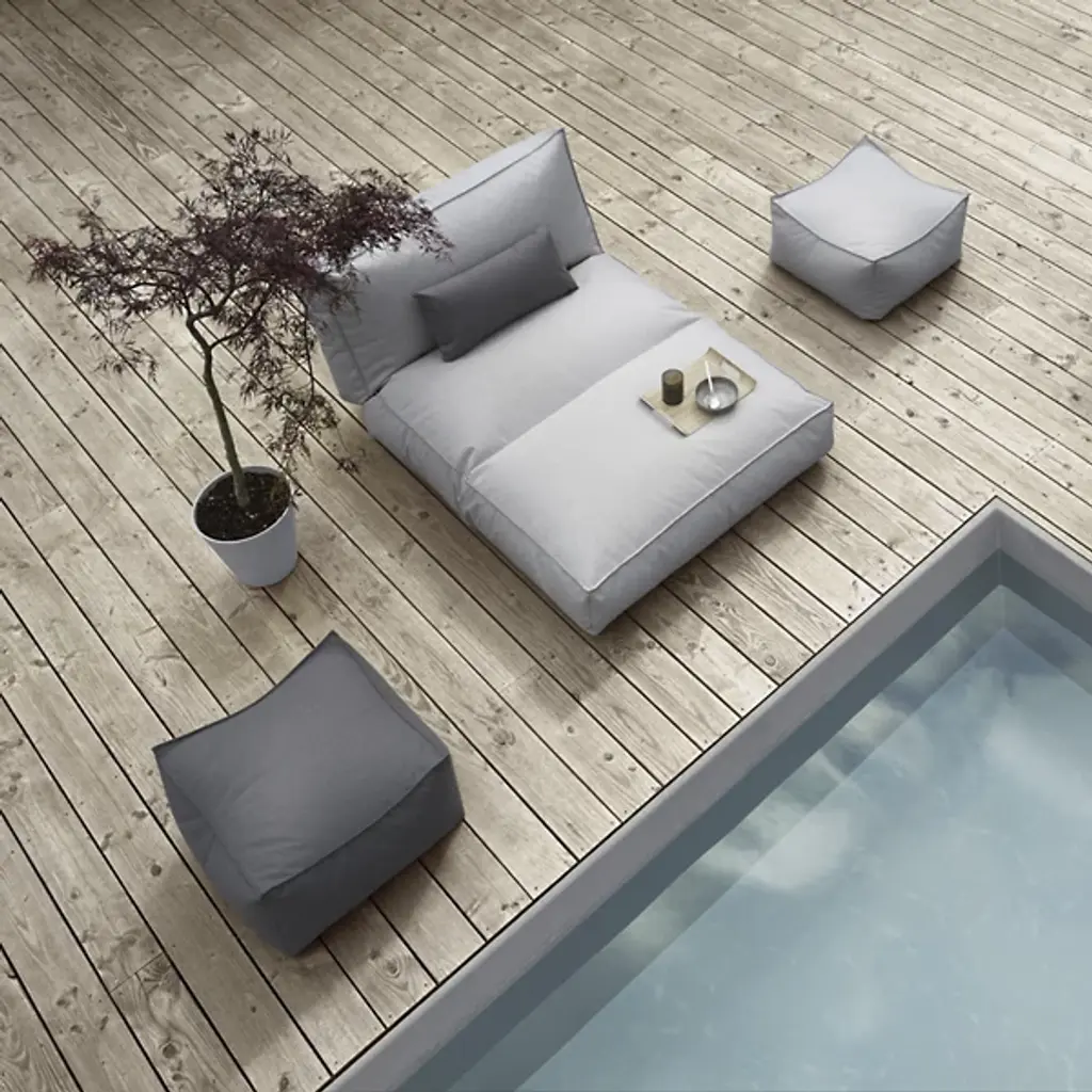 The Stay Outdoor Daybed from Blomus invites you to relax and enjoy the warm season outside. This low-lying lounger, made from water-repellent material, offers ultimate comfort. Designed by German Studio Kaschkasch, its high-quality, weatherproof textile is easy to care for and UV-resistant. It maintains its shape and volume and is filled with environmentally neutral EPS pearls. Lightweight materials make moving on your terrace or garden easy, and the adjustable headboard ensures optimal relaxation. The robust double-layer premium bottom enhances durability and prevents mold.