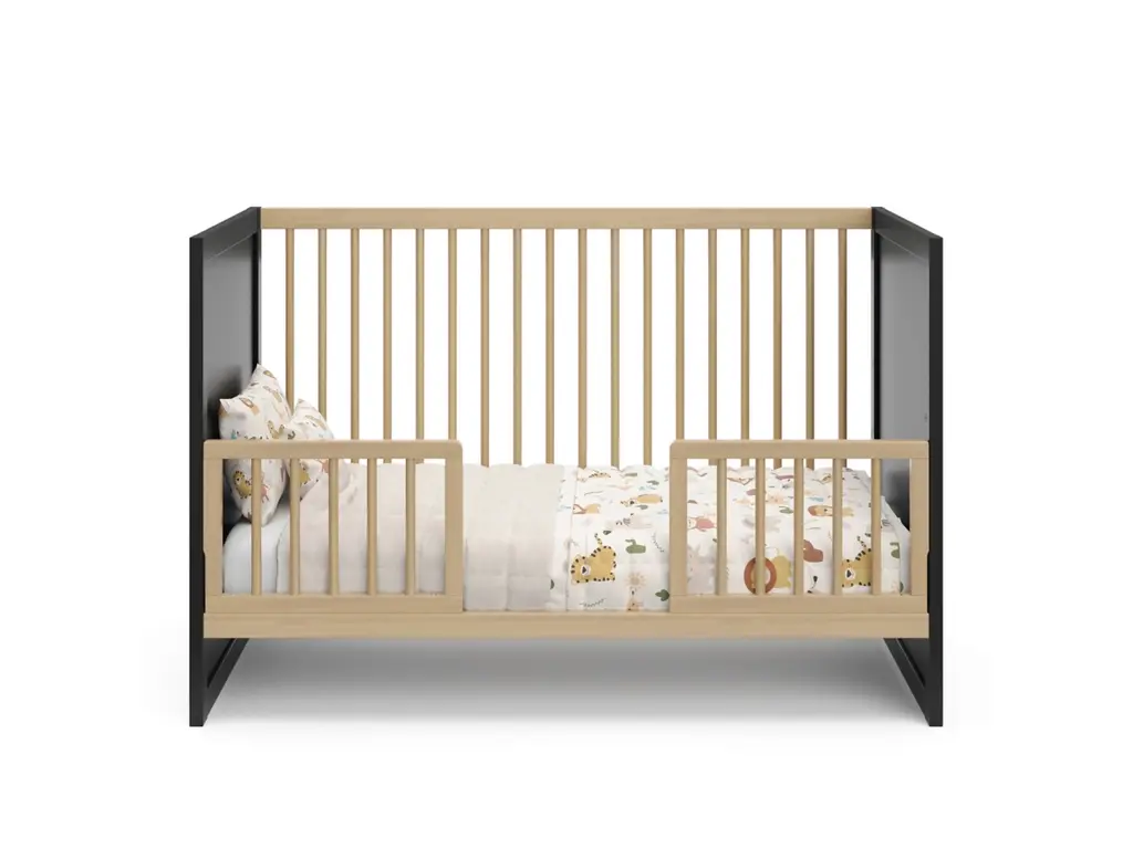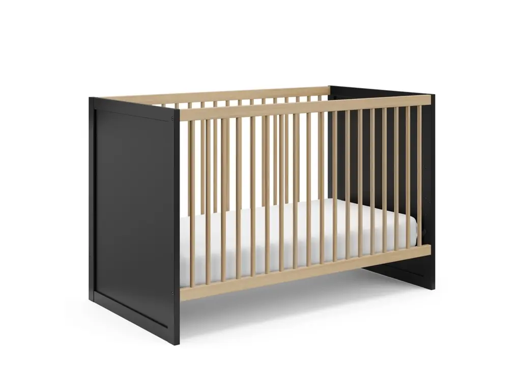Bring your dream nursery to life with the Storkcraft Calabasas 3-in-1 Convertible Crib. Versatile design and California style, all at an incredible value. With its solid side panels and modern-minimalist aesthetic, the Calabasas is a fitting addition to any nursery. The Calabasas is crafted from pine wood and wood composites, and its applied finish has been tested to meet or exceed the applicable ASTM and CPSIA safety standards. The Storkcraft Calabasas 3-in-1 Convertible Crib is JPMA Certified, meaning it's been expert tested by third-party, accredited laboratories to meet or exceed all of the applicable category voluntary and mandatory safety standards. Designed to adapt to your growing baby, the Calabasas is equipped with an adjustable mattress support base with 4 different height options so the mattress support base's position can be lowered as your child grows [please note, this crib may only be used until your child can easily climb out or is taller than 35 inches (89 cm)]. To support your child's journey from babyhood to toddlerhood (and beyond), the Calabasas is able to be converted from a crib to a toddler bed (compatible toddler guardrail kit sold separately), and daybed. The Storkcraft Calabasas 3-in-1 Convertible Crib is designed to accommodate any standard full-size crib & toddler mattress (mattress sold separately). Storkcraft is the proud recipient of the Parent Tested Parent Approved (PTPA) Seal of Approval for nursery and children's bedroom furniture, 2023 PTPA Top Product Award, and the 2018-2023 Women's Choice Award for 9 out of 10 Recommended Baby & Kids Furniture. Backed by a 1-year limited manufacturer's warranty. Assembly required. Mattress sold separately.