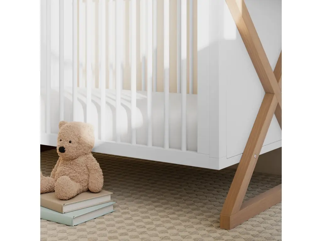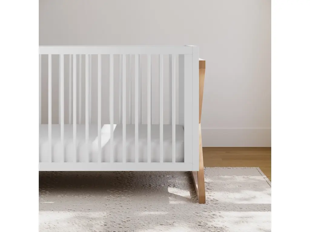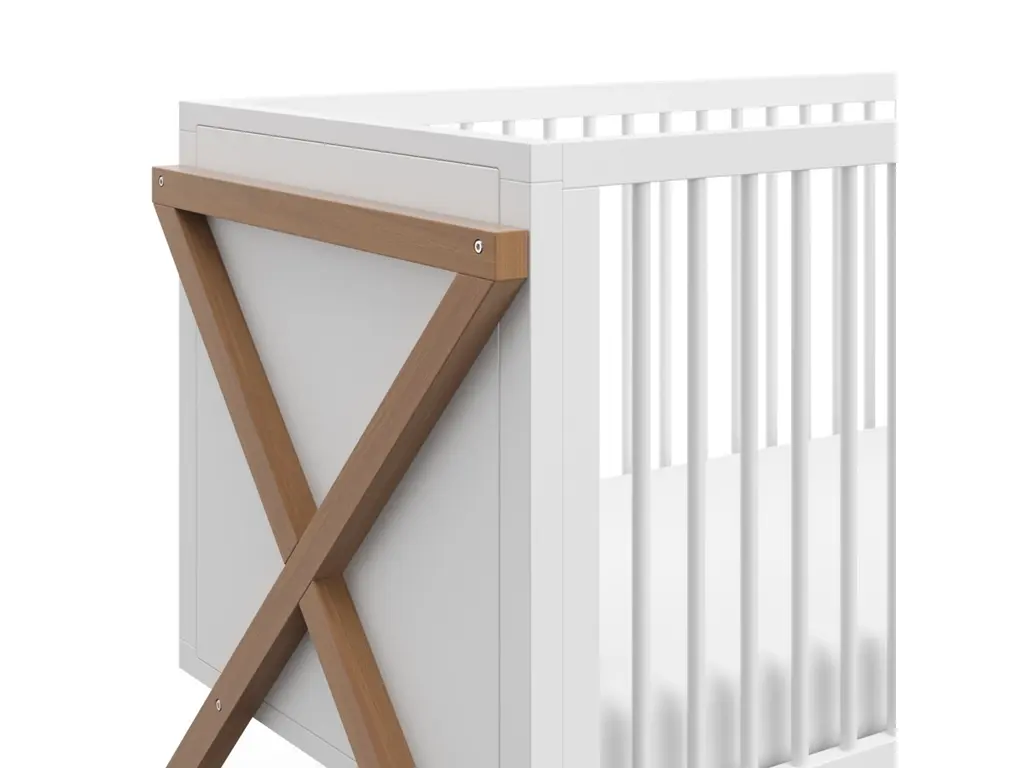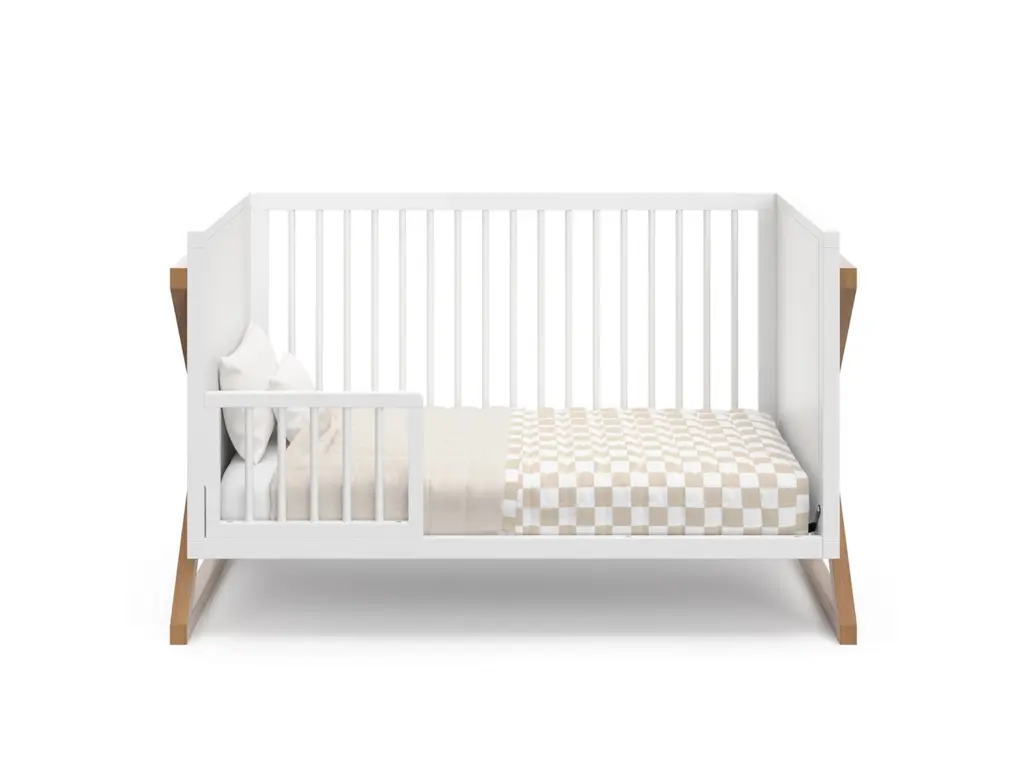 The Storkcraft Equinox 3-in-1 Convertible Crib is a stunning addition to the modern nursery. With its clean lines, two-tone finish, and signature "X" design, the Equinox is an eye-catching baby crib that add a designer look to any nursery. Designed to adapt to your growing baby, the Storkcraft Equinox 3-in-1 Convertible Crib is equipped with a 3-position adjustable mattress support base, and can convert from a crib into a daybed and toddler bed. JPMA certified and compliant with all applicable federal safety standards, rest easy knowing that the Equinox is backed by Storkcraft's 1-year limited warranty and supportive customer care. Exclusively from Storkcraft, proud recipient of the 2023 Women's Choice Award for 9 out of 10 Customer Recommended Baby & Kids Furniture.