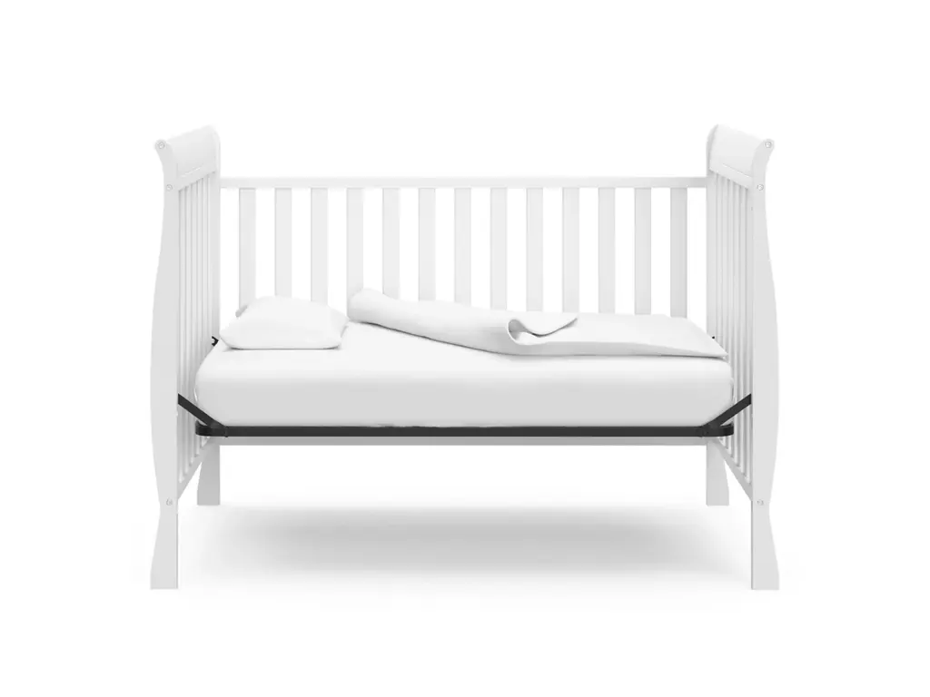 Crafted with high-quality materials and in the beloved, timeless sleigh design, the Storkcraft Maxwell 3-in-1 Convertible Crib offers parents the best of both worlds: complete nursery functionality at unbeatable value. The Storkcraft Maxwell 3-in-1 Convertible Crib converts from a baby crib into a daybed and toddler bed. As a crib, the Maxwell includes an adjustable mattress support base with 3 height options - so it will adapt to your growing baby. When your baby is ready to graduate from the crib, the Maxwell easily and conveniently transforms into a daybed and toddler bed. The Maxwell was designed to fit any standard full-size crib and toddler bed mattress. Rigorously tested and crafted with care, the Storkcraft Maxwell meets or exceeds all applicable federal safety standards, and is certified by the Juvenile Products Manufacturers Association (JPMA). Also, Storkcraft is the proud recipient of the 2023 Women's Choice Award for 9 out of 10 Customer Recommended Baby & Kids Furniture. Crafted with love, passion, and care by Storkcraft - the longest-standing name in baby cribs, with over 75 years of experience in nursery and kids furniture.