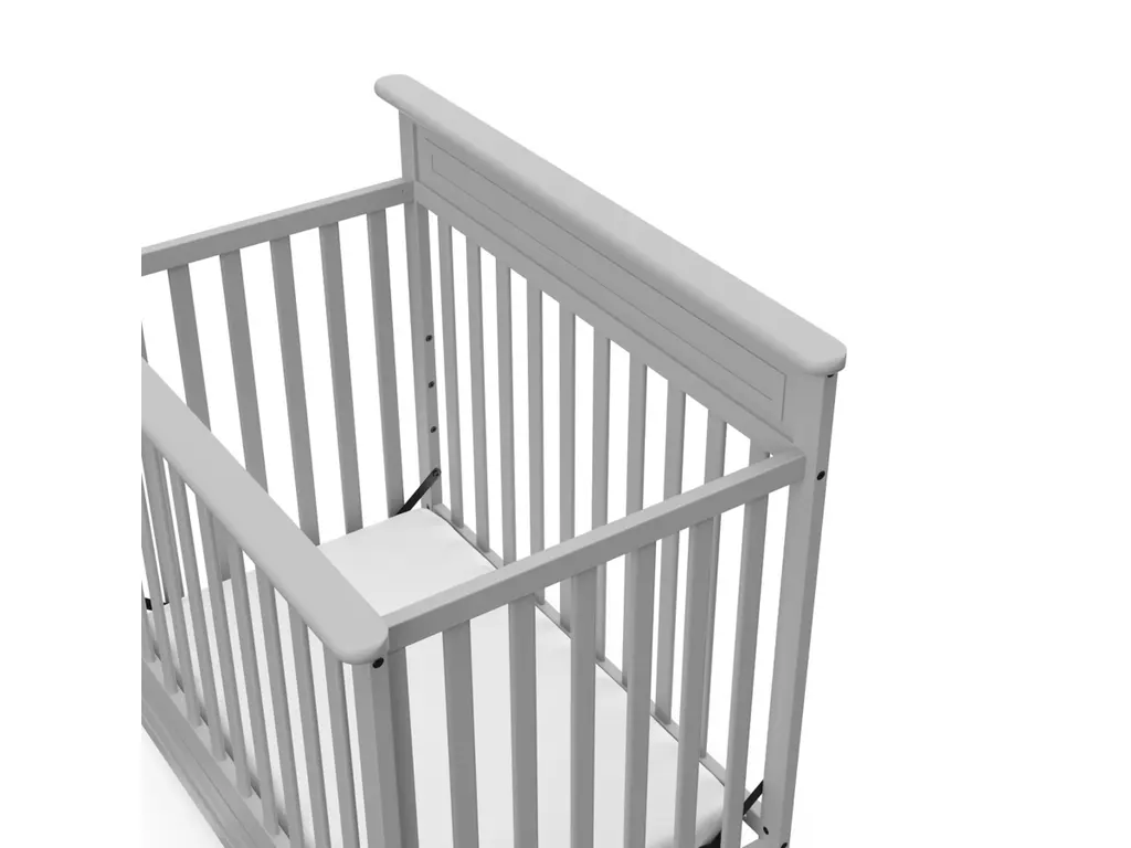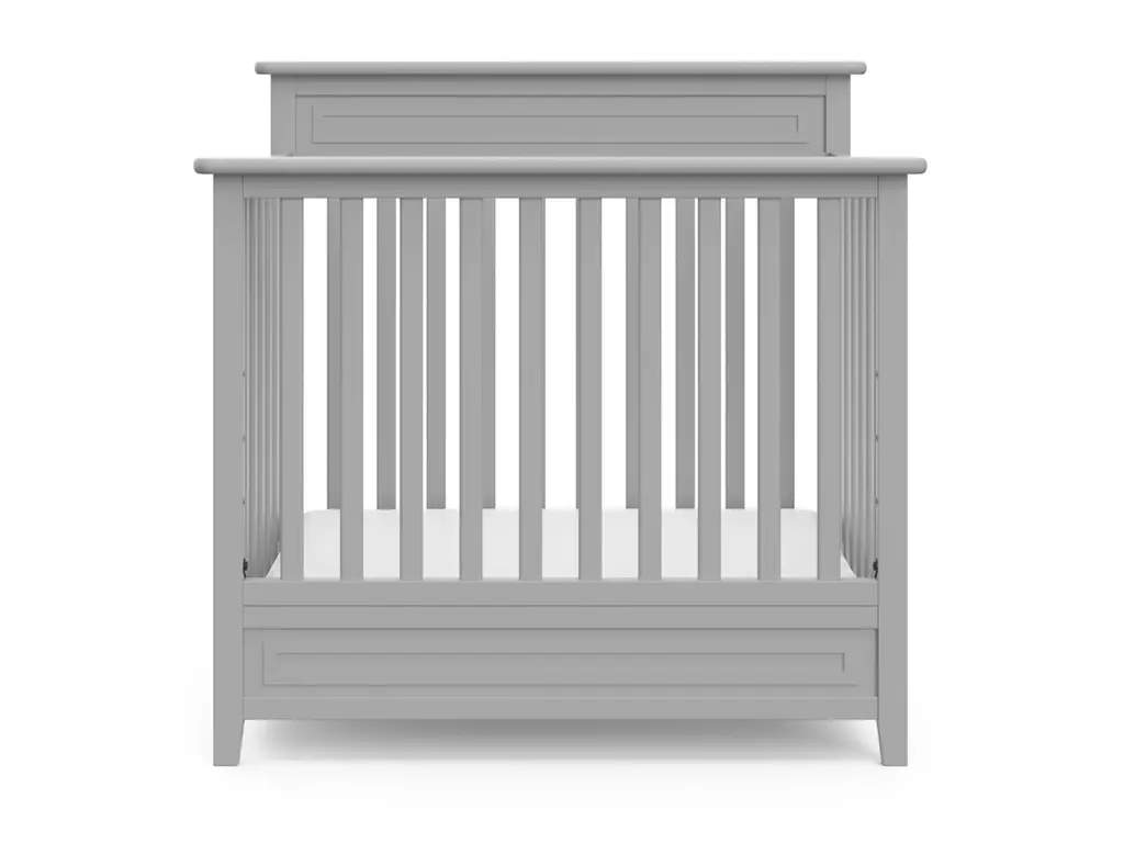 The Storkcraft Petal 4-in-1 Convertible Mini Crib with Bonus Crib Mattress is the perfect choice for parents that have less space to work with, but still want to "go big" on design, details, and features. With its beautiful design and elegant details, the Petal is the perfect choice to get your nursery started. The Petal is GREENGUARD Gold Certified, Certified products are screened for more than 10,000 chemicals and VOCs known to pollute indoor air. Unlike other mini cribs that only come with a mattress pad, the Storkcraft Petal includes a JPMA Certified, premium 2.75-inch foam crib mattress with water-resistant cover and breathable foam core. Designed to adapt to your growing baby, the Storkcraft Petal 4-in-1 Convertible Mini Crib has an adjustable crib mattress support base with 4 different height options, and easily converts from a conveniently-sized mini baby crib to daybed, twin-size bed with high footboard configuration, and twin-size bed with low footboard configuration. This convertible mini crib and bonus crib mattress are JPMA Certified, and meet or exceed all applicable federal safety standards. Rest easy knowing that the Petal 4-in-1 Convertible Mini Crib is backed by Storkcraft's 1-year limited warranty and supportive customer care. 3-inch foam crib mattress included. Crib conversion kit sold separately. Exclusively from Storkcraft, proud recipient of the 2023 Women's Choice Award for 9 out of 10 Customer Recommended Baby & Kids Furniture.