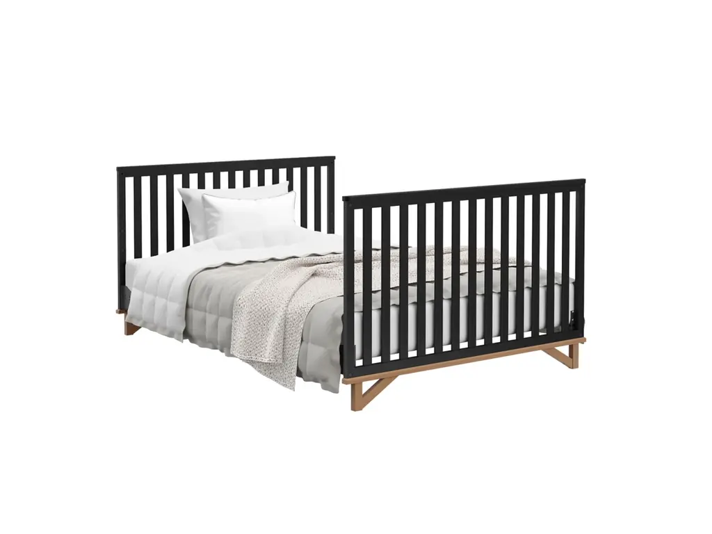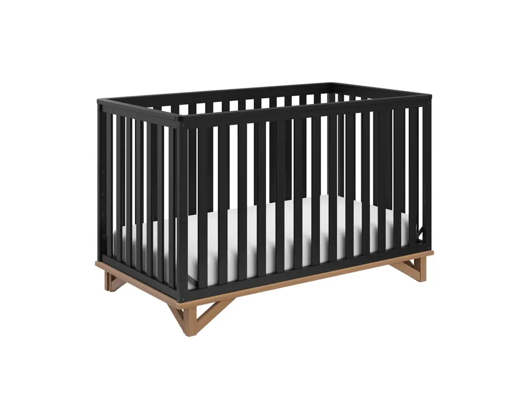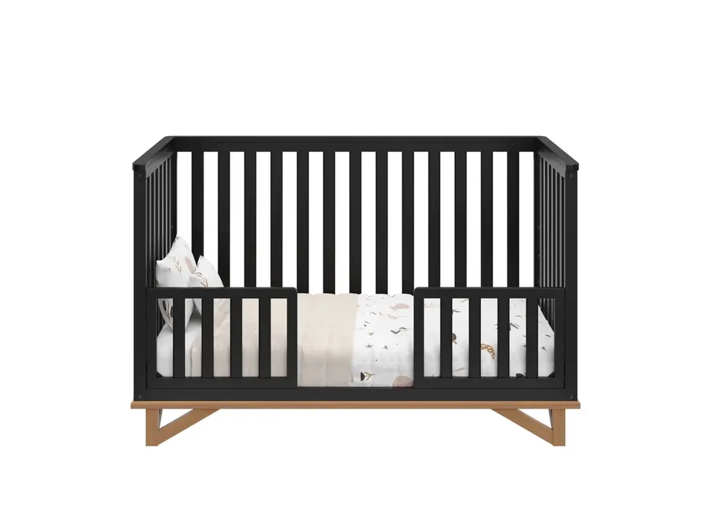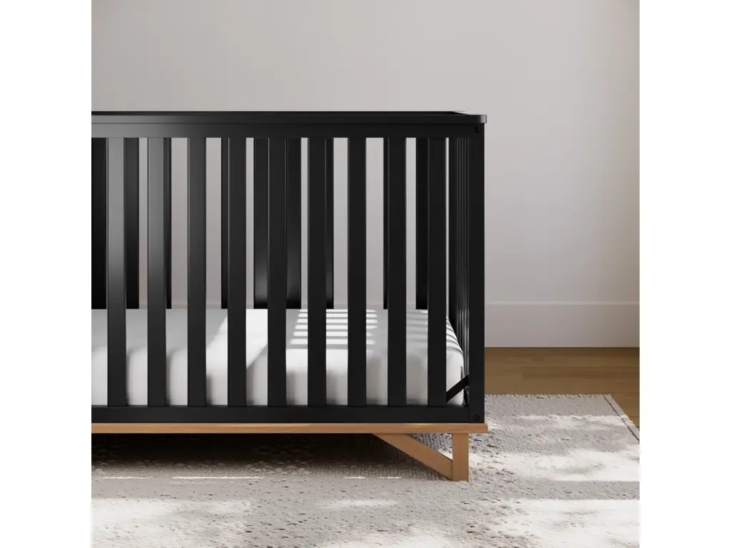 Two-tone style, architectural inspiration, and timeless style, introducing our Santa Monica crib. The Santa Monica is GREENGUARD Gold Certified, meaning it's been screened for over 10,000 chemicals and volatile organic compounds (VOCs) known to pollute indoor air. The Santa Monica is crafted from pine wood, engineered wood, and wood composites, and is available in multiple finishes to bring your dream nursery to life. Designed to adapt to your growing child, the Santa Monica easily converts from a crib into a toddler bed, daybed, full-size bed with headboard only, and full-size bed with both headboard & footboard. Also, it's equipped with a 4-position adjustable mattress support base that can be repositioned as your child grows. The Santa Monica fits any standard full-size crib and toddler mattress (we recommend any Graco crib mattress) and is compatible with 1 or 2 of our universal toddler safety guardrails. In addition to being GREENGUARD Gold Certified, the Santa Monica is JPMA Certified, meaning it's been expert tested by independent laboratories to guarantee that it meets the highest standards for your child's safety. Also, Storkcraft is the proud recipient of the Parent Tested Parent Approved Seal of Approval and 2023 Women's Choice Award for 9 out of 10 Recommended Baby & Kids Furniture. Assembly required. Crib mattress sold separately. Toddler safety guardrail sold separately. Full-size crib conversion kit sold separately.