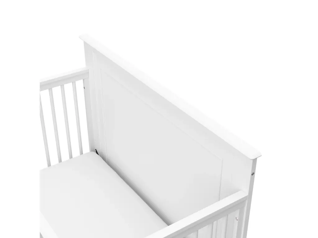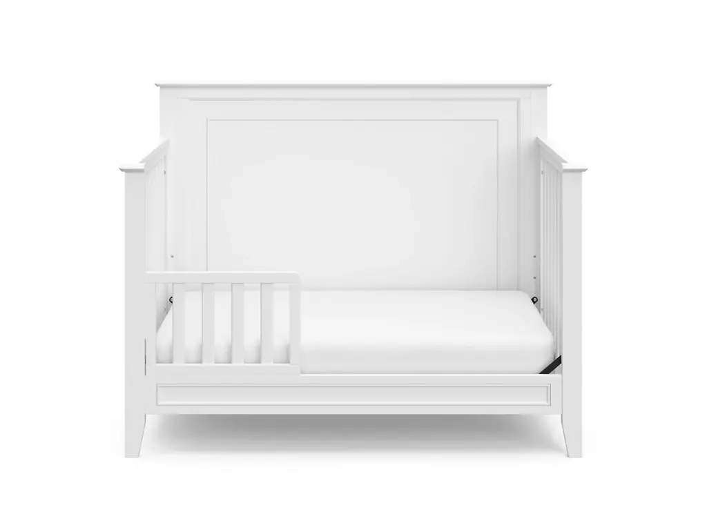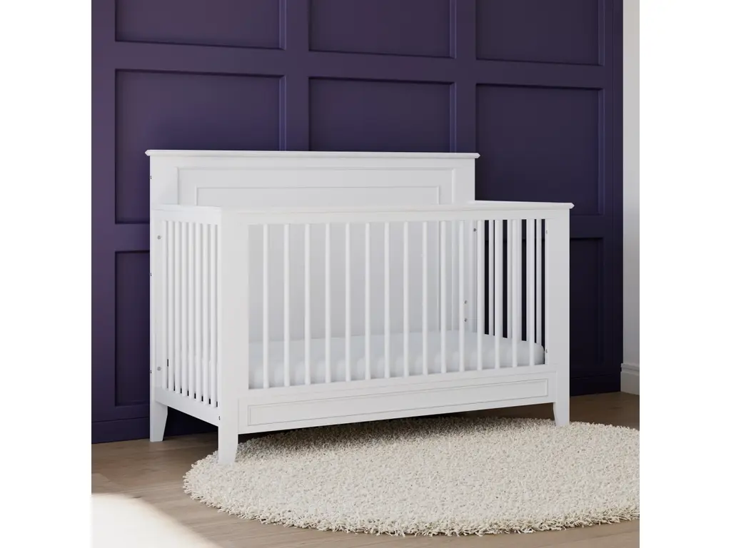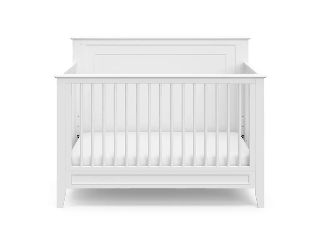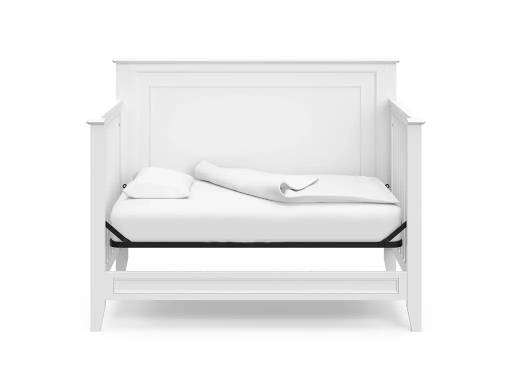 The Storkcraft Solstice 5-in-1 Convertible Crib features clean lines, classic dowels, a detailed back panel, and angled feet that will add a touch of modern style to your baby's nursery. Designed to adapt to your growing baby, the Solstice is equipped with a 3-position adjustable mattress support base, and can convert into a daybed, toddler bed, and full-size bed. JPMA Certified and compliant with all applicable federal safety standards, rest easy knowing that the Solstice is backed by Storkcraft's 1-year limited warranty and supportive customer care. Exclusively from Storkcraft, proud recipient of the 2023 Women's Choice Award for 9 out of 10 Customer Recommended Baby & kids furniture.