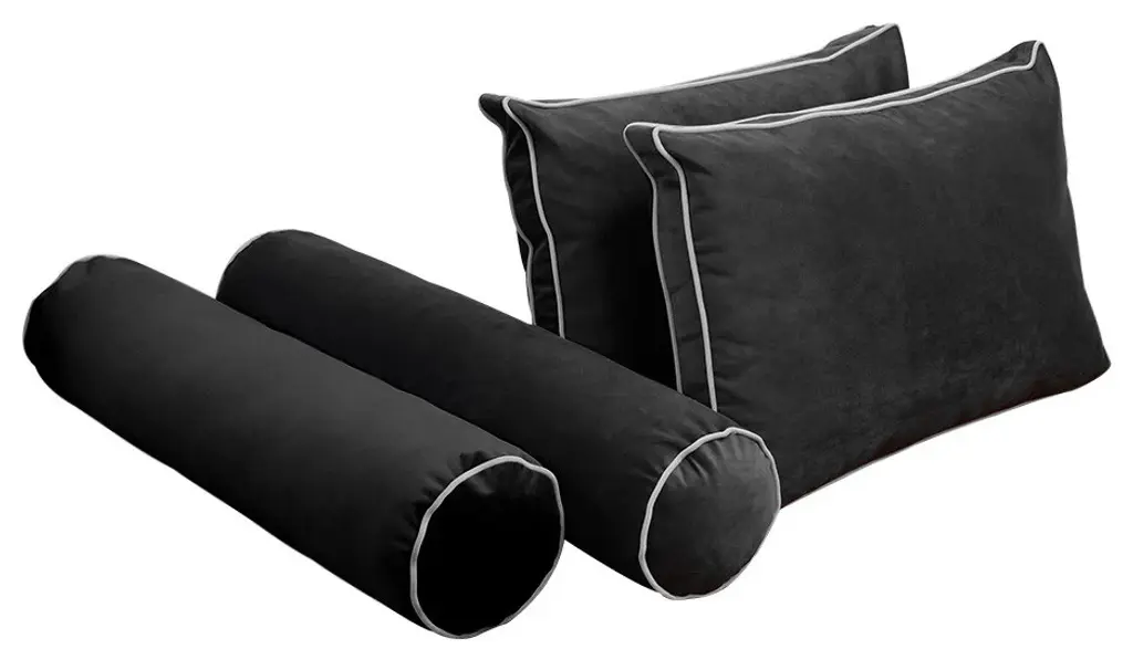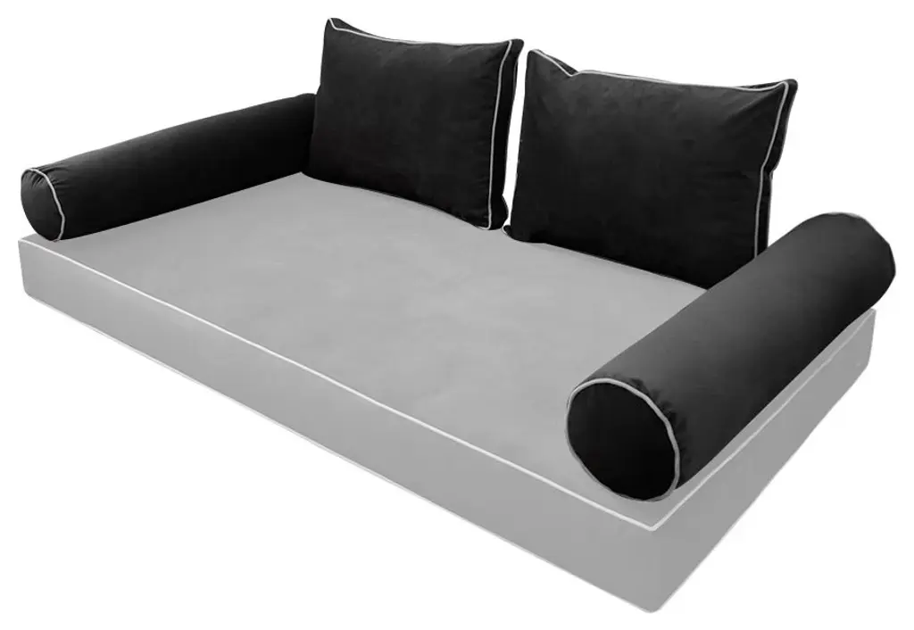 • Style-V1 Velvet Contrast Pipe Indoor Daybed Bolster & Back Pillow Cover Set• • MATTRESS AND INSERTS NOT INCLUDED• • Fully Encase Cover with Hidden Zipper• Fabric: 100% Polyester Velvet Fabric• Fabric: 300 Gram/m2• 2 x Bolster Pillow Cover Only: 52" x 8"• 2 x Back Pillow Cover Only: 28" x 20" x 5"• Color: AD350• Edge Trim: Contrast Pipe• Cleaning Tip: Professional Cleaning Only• Quantity: 1