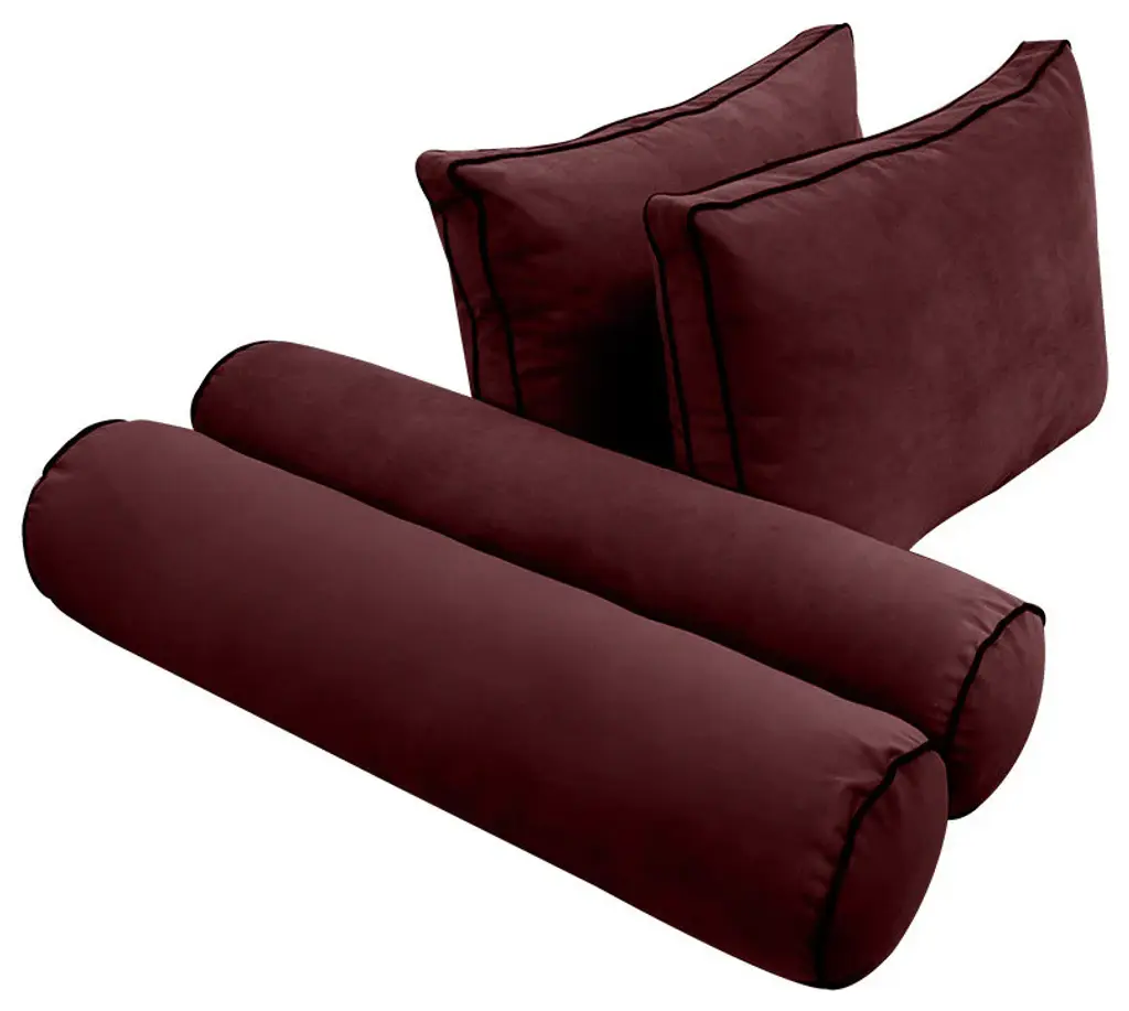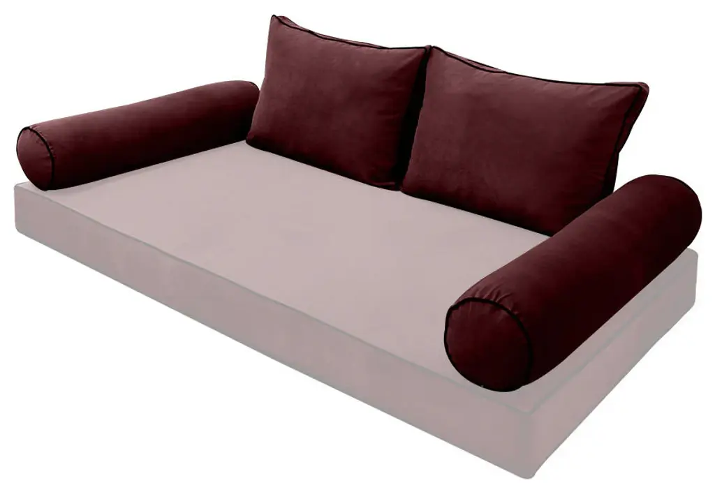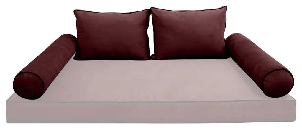 • Style-V1 Velvet Contrast Pipe Indoor Daybed Bolster & Back Pillow Cover Set• • MATTRESS AND INSERTS NOT INCLUDED• • Fully Encase Cover with Hidden Zipper• Fabric: 100% Polyester Velvet Fabric• Fabric: 300 Gram/m2• 2 x Bolster Pillow Cover Only: 52" x 8"• 2 x Back Pillow Cover Only: 28" x 20" x 5"• Color: AD368• Edge Trim: Contrast Pipe• Cleaning Tip: Professional Cleaning Only• Quantity: 1