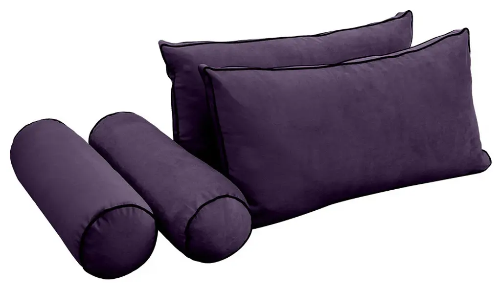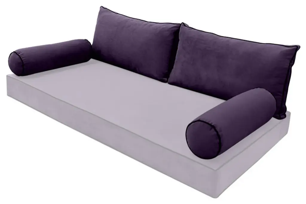 • Style-V2 Velvet Contrast Pipe Indoor Daybed Bolster & Back Pillow Cover Set• • MATTRESS AND INSERTS NOT INCLUDED• • Fully Encase Cover with Hidden Zipper• Fabric: 100% Polyester Velvet Fabric• Fabric: 300 Gram/m2• 2 x Bolster Pillow Cover Only: 42" x 8"• 2 x Back Pillow Cover Only: 36.5" x 20" x 5"• Color: AD339• Edge Trim: Contrast Pipe• Cleaning Tip: Professional Cleaning Only• Quantity: 1