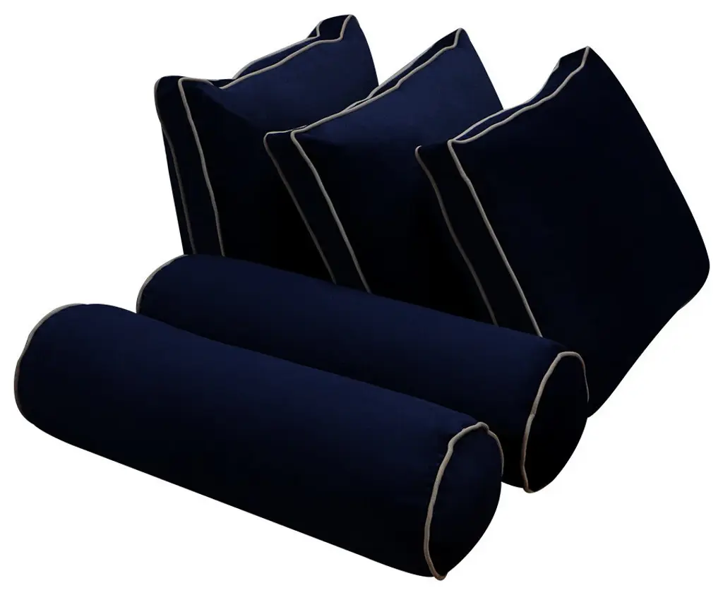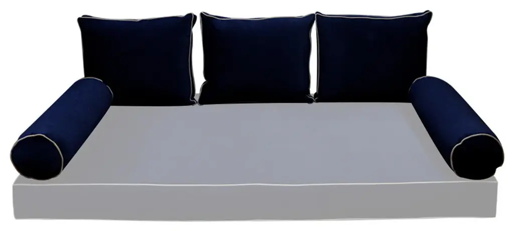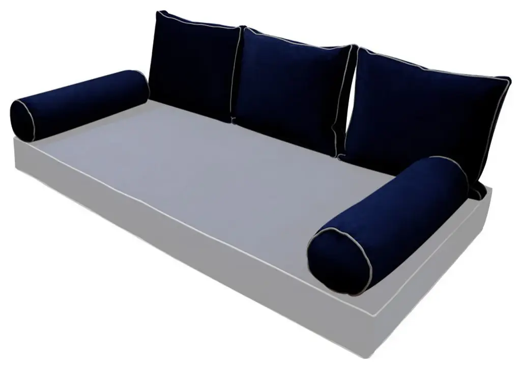 • Style-V3 Velvet Contrast Pipe Indoor Daybed Bolster & Back Pillow Cover Set• • MATTRESS AND INSERTS NOT INCLUDED• • Fully Encase Cover with Hidden Zipper• Fabric: 100% Polyester Velvet Fabric• Fabric: 300 Gram/m2• 2 x Bolster Pillow Cover Only: 42" x 8"• 3 x Back Pillow Cover Only: 24.5" x 20" x 5"• Color: AD373• Edge Trim: Contrast Pipe• Cleaning Tip: Professional Cleaning Only• Quantity: 1