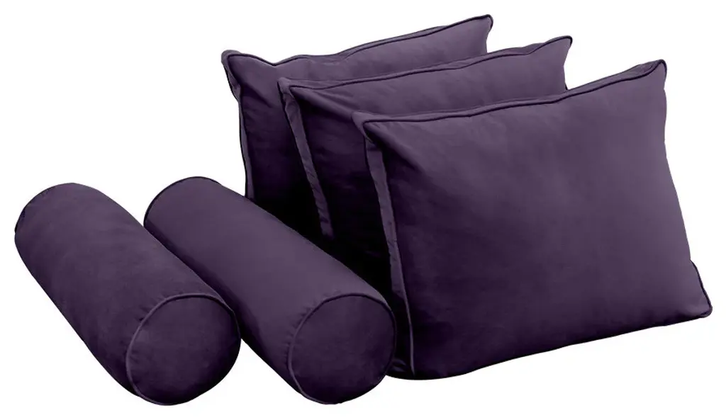 • Style-V3 Velvet Same Pipe Indoor Daybed Bolster & Back Pillow Cover Set• • MATTRESS AND INSERTS NOT INCLUDED• • Fully Encase Cover with Hidden Zipper• Fabric: 100% Polyester Velvet Fabric• Fabric: 300 Gram/m2• 2 x Bolster Pillow Cover Only: 42" x 8"• 3 x Back Pillow Cover Only: 24.5" x 20" x 5"• Color: AD339• Edge Trim: Same Pipe• Cleaning Tip: Professional Cleaning Only• Quantity: 1