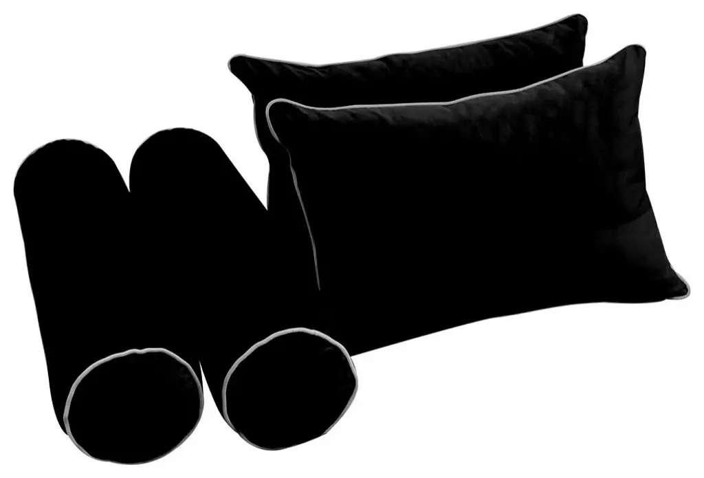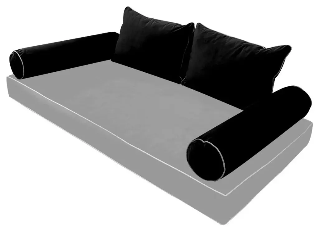• Style-V4 Velvet Contrast Pipe Indoor Daybed Bolster & Back Pillow Cover Set• • MATTRESS AND INSERTS NOT INCLUDED• • Fully Encase Cover with Hidden Zipper• Fabric: 100% Polyester Velvet Fabric• Fabric: 300 Gram/m2• 2 x Bolster Pillow Cover Only: 52" x 8"• 2 x Back Pillow Cover Only: 28" x 20" x 5"• Color: AD374• Edge Trim: Contrast Pipe• Cleaning Tip: Professional Cleaning Only• Quantity: 1