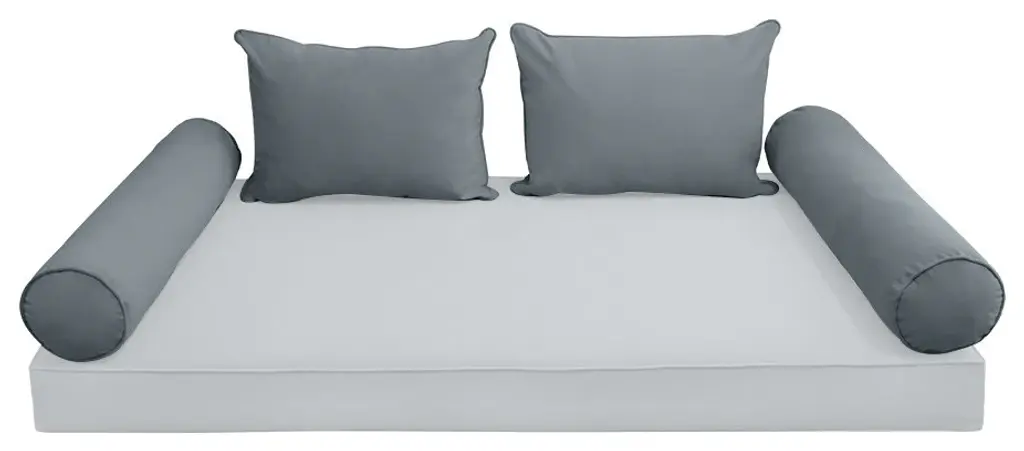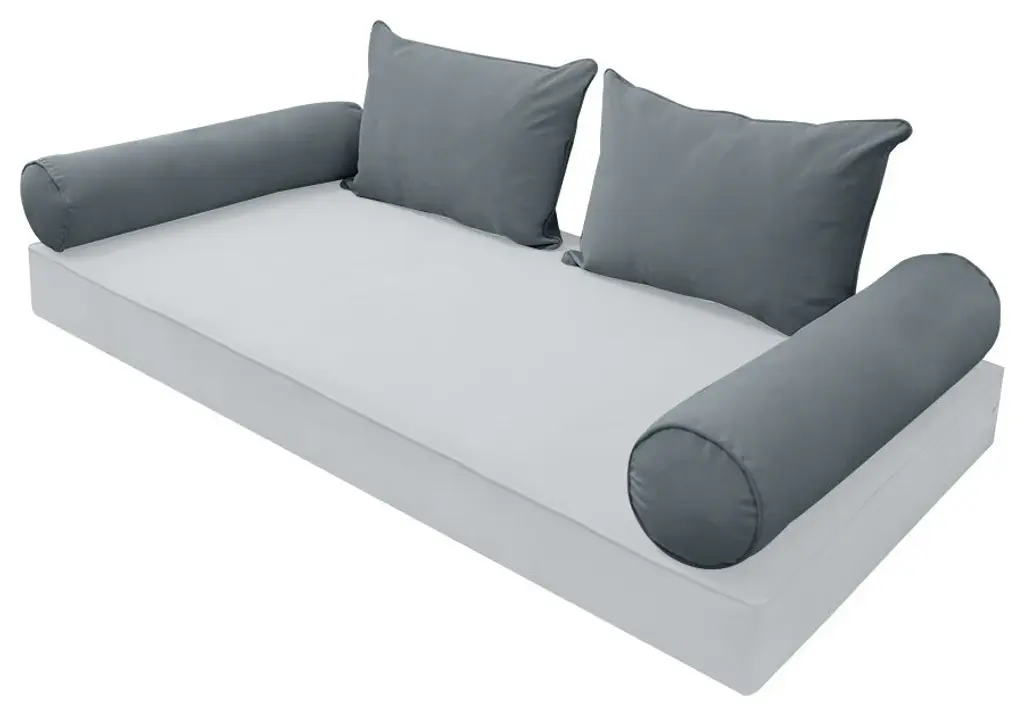 • Style-V4 Velvet Same Pipe Indoor Daybed Bolster & Back Pillow Cover Set• • MATTRESS AND INSERTS NOT INCLUDED• • Fully Encase Cover with Hidden Zipper• Fabric: 100% Polyester Velvet Fabric• Fabric: 300 Gram/m2• 2 x Bolster Pillow Cover Only: 52" x 8"• 2 x Back Pillow Cover Only: 28" x 20" x 5"• Color: AD347• Edge Trim: Same Pipe• Cleaning Tip: Professional Cleaning Only• Quantity: 1