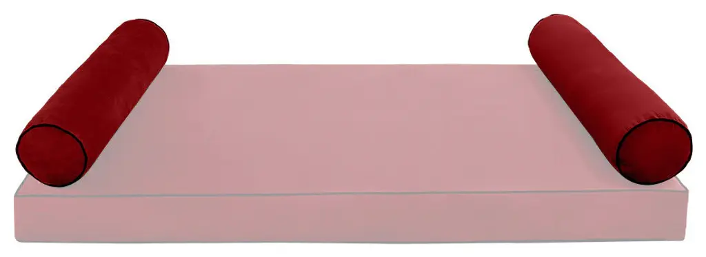 • Style-V5 Velvet Contrast Pipe Indoor Daybed Bolster & Back Pillow Cover Set• • MATTRESS AND INSERTS NOT INCLUDED• • Fully Encase Cover with Hidden Zipper• Fabric: 100% Polyester Velvet Fabric• Fabric: 300 Gram/m2• 2 x Bolster Pillow Cover Only: 52" x 8"• Color: AD369• Edge Trim: Contrast Pipe• Cleaning Tip: Professional Cleaning Only• Quantity: 1