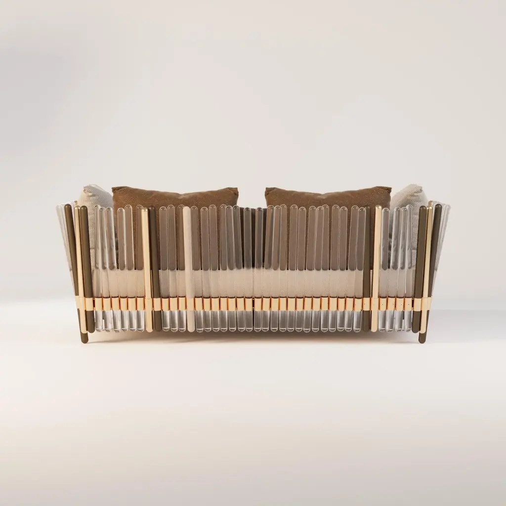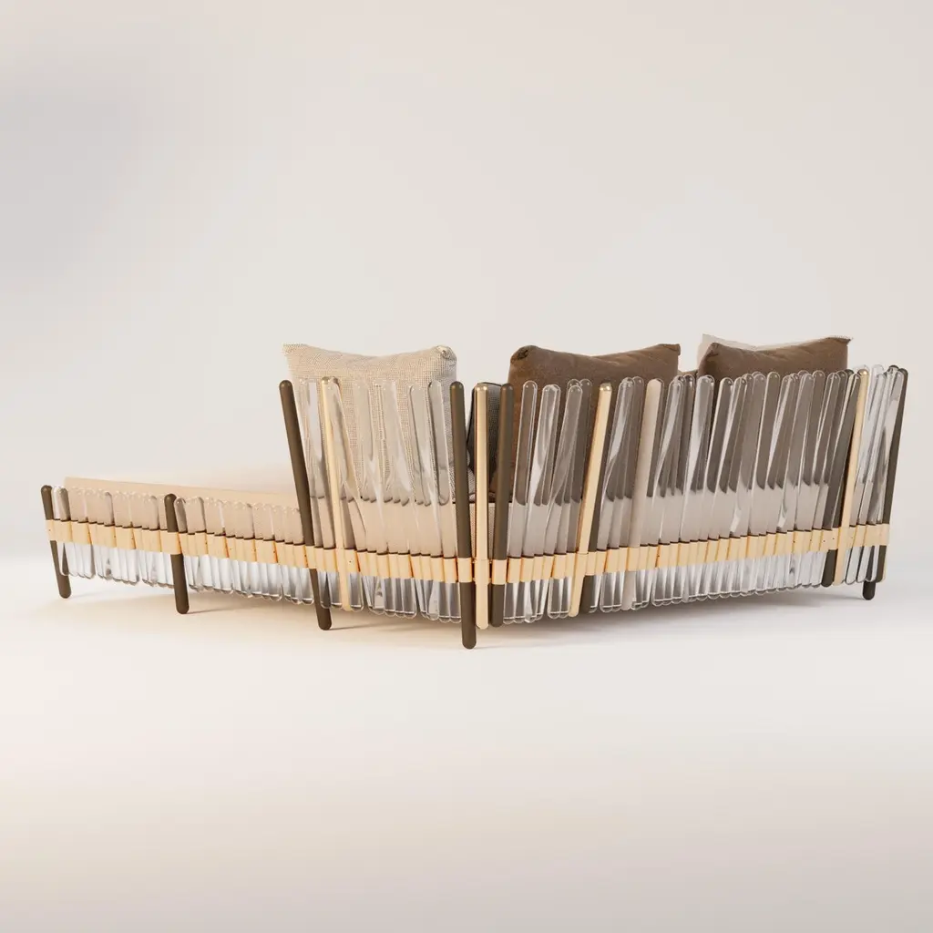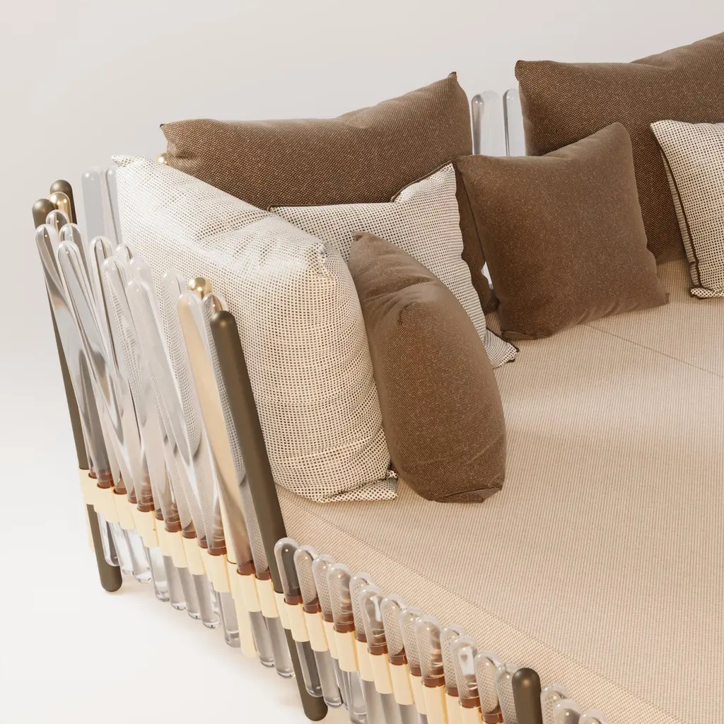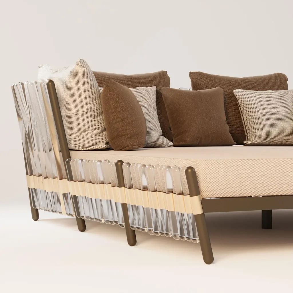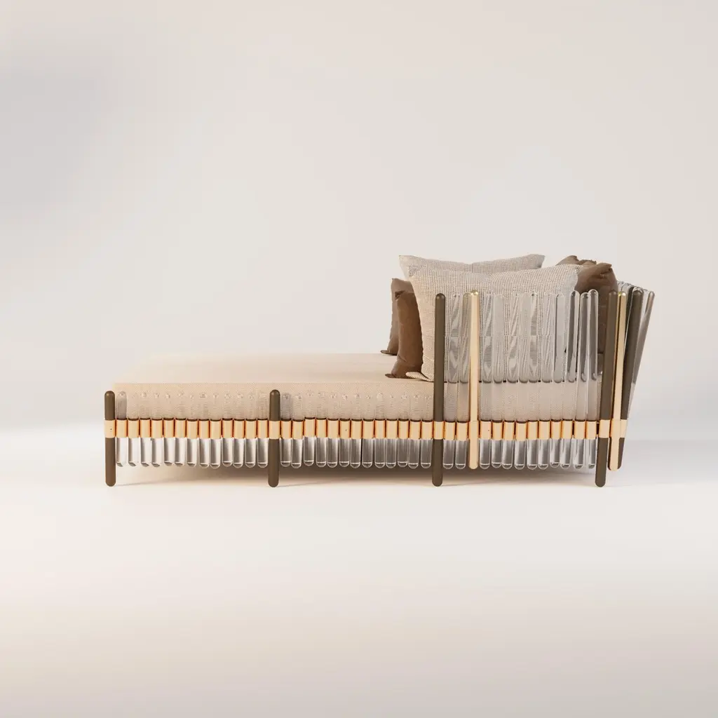 Houdini Outdoor DaybedWhere the magic of sunsets and dawns come alive in bold, innovative forms. The Houdini daybed is a masterpiece where modern elegance meets visionary design. As light and shadow play through the acrylic waves, the chair blends effortlessly with its surroundings, creating a harmonious fusion of timeless design and outdoor allure. The whole design of this sophisticated outdoor armchair was developed according to the following structure:Metallic structure: Stainless steel;Metallic details: Stainless steel;Rods: Acrylic;Upholstery: Acrylic fabric and outdoor leather;All Myface materials are from premium suppliers, engineered to offer the best performance possible outdoors.Water, Mold, Mildew, UV, and Fading resistance are some of the characteristics that you can expect from both materials, which are available in a wide array of colors and patterns.