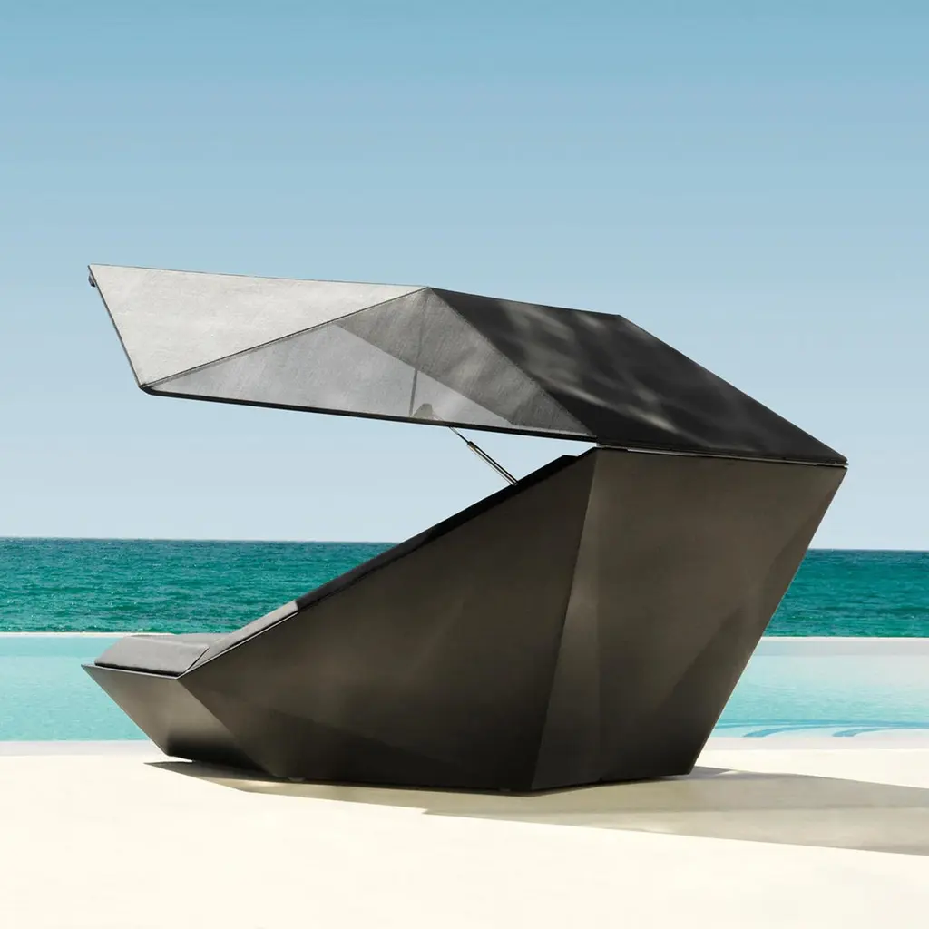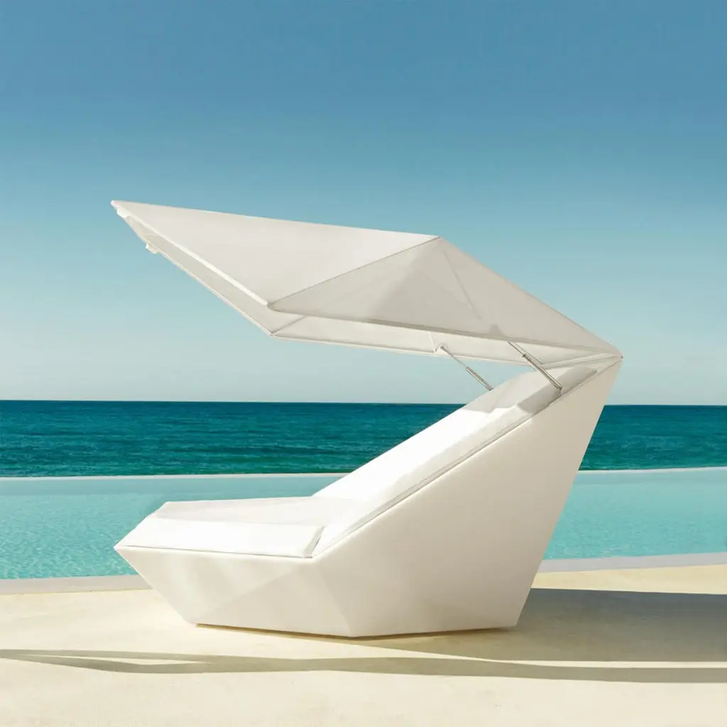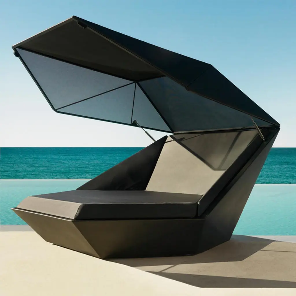 Daybed sunny white Lacquered with base structure in resin forindoor or outdoor use in white lacquered finish. With sunbrella topin white batyline canvas. Upholstered seat covered with indoor oroutdoor white vinyl fabric. With included 4 cushions 60 x 60cm each,covered with indoor or outdoor white vinyl fabric. With sound bluetoothsystem audio pack to link your tablet or smartphone to the sound systemvia Bluetooth. L 180 x D 180 x H 90cm, with opened sunbrella height is: 140cm.Also available in Option 2:With base structure in resin in white finish for indoor or outdooruse with colored changed option with red, or green, or blue, orpurple, or yellow Led light inside with remote control unit forchanging colors. Also included, a Led control by DMX wirelesssystem, you can choose between 2 options from: ProfessionalXLR DMX and Home WIFI DMX. (Remote control included).With sunbrella top in white batyline canvas. Upholstered seatcovered with indoor or outdoor white vinyl fabric. With included4 cushions 60 x 60cm each, covered with indoor or outdoor whitevinyl fabric.Also available in Option 3:With base structure in resin for indoor or outdoor use in blacklacquered finish. With sunbrella top in bronze batyline canvas.Upholstered seat covered with indoor or outdoor black vinylfabric. With included 4 cushions 60 x 60cm each, covered withindoor or outdoor black vinyl fabric. With sound bluetooth systemaudio pack to link your tablet or smartphone to the sound systemvia Bluetooth.