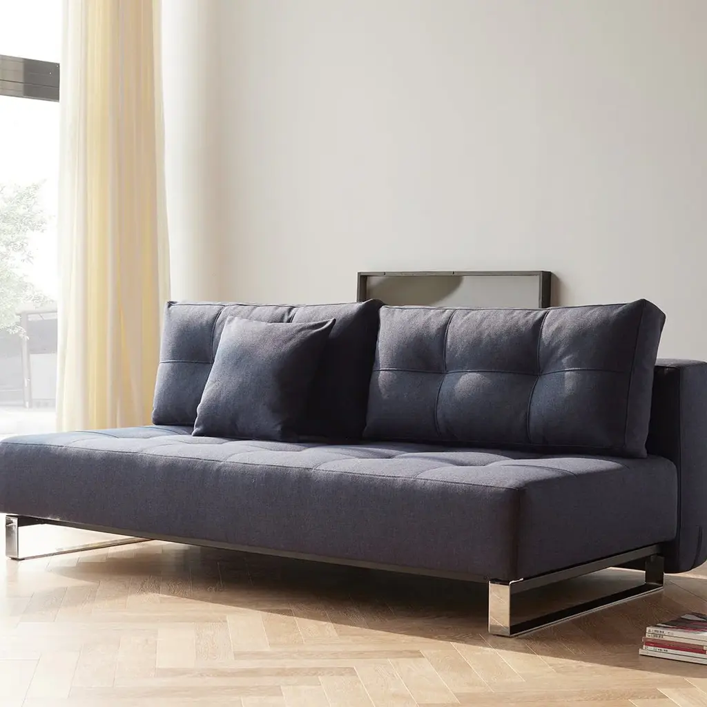 "Innovation Living's uniqueness lies in the uncompromising aesthetics, creativity, quality, and functionality. The aesthetics reflect the zeitgeist of our time and inspire the creative approach to solving every day challenges brought forth by the global compact living trends and the need for functional solutions to real problems. The Slyder series convert easily from sofas to beds providing family and friends a chance to spend time together, despite limited living space. So, whether the sofa bed needs to serve as a primary sitting/lounging unit or a primarily as a bed, the aesthetic and durable quality of our Slyders offer the solution." - Per Weiss, Chief Design Officer The Supermax Deluxe is a space saving alternative developed for the compact living environment. Easy to transform from sofa to bed, and back, combined with detailed the craftsmanship of the design, has mad the Supermax the apex of style and comfort among sofa bed for over 10 years. The Supemax Deluxe delivers maximum comfort and size in a timeless contemporary design. Excess Pocket Spring Technology: The higher coils in the Excess Pocket Spring models provide a softer sofa comfort. In combination with the core foam casing, the Excess mattress has higher absorption of pressure on each spring for a more comfortable rest.