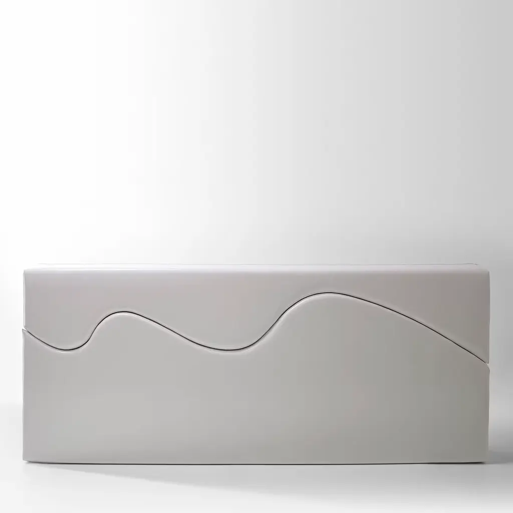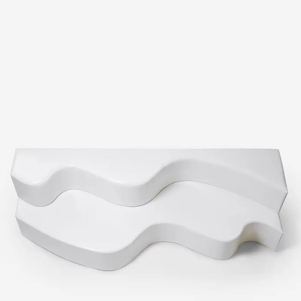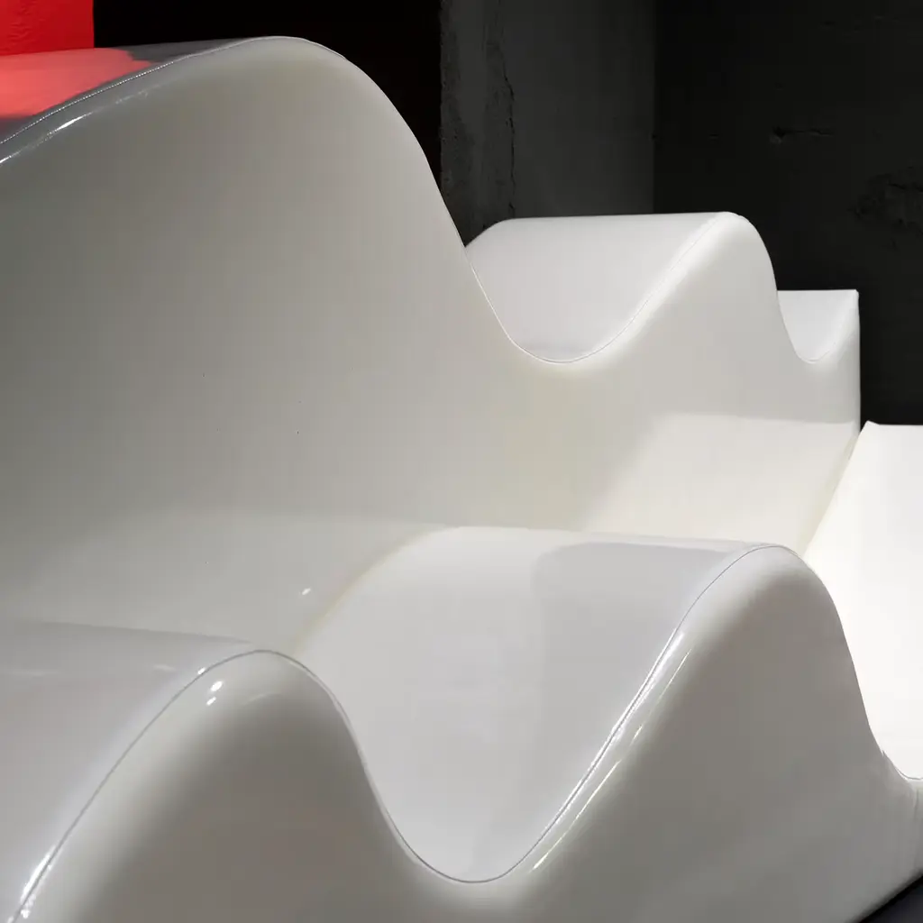 An iconic 1967 design by Florentine radical group Archizoom, this bold and stately piece is the first sofa in the history of design to lack a conventional frame. Composed of two waved elements cut from a single piece of polyurethane that can be easily arranged in different configurations to become a chaise longue or daybed, it is covered with a white polished PVC-coated fabric enhancing its Pop allure. Also available in red or black.