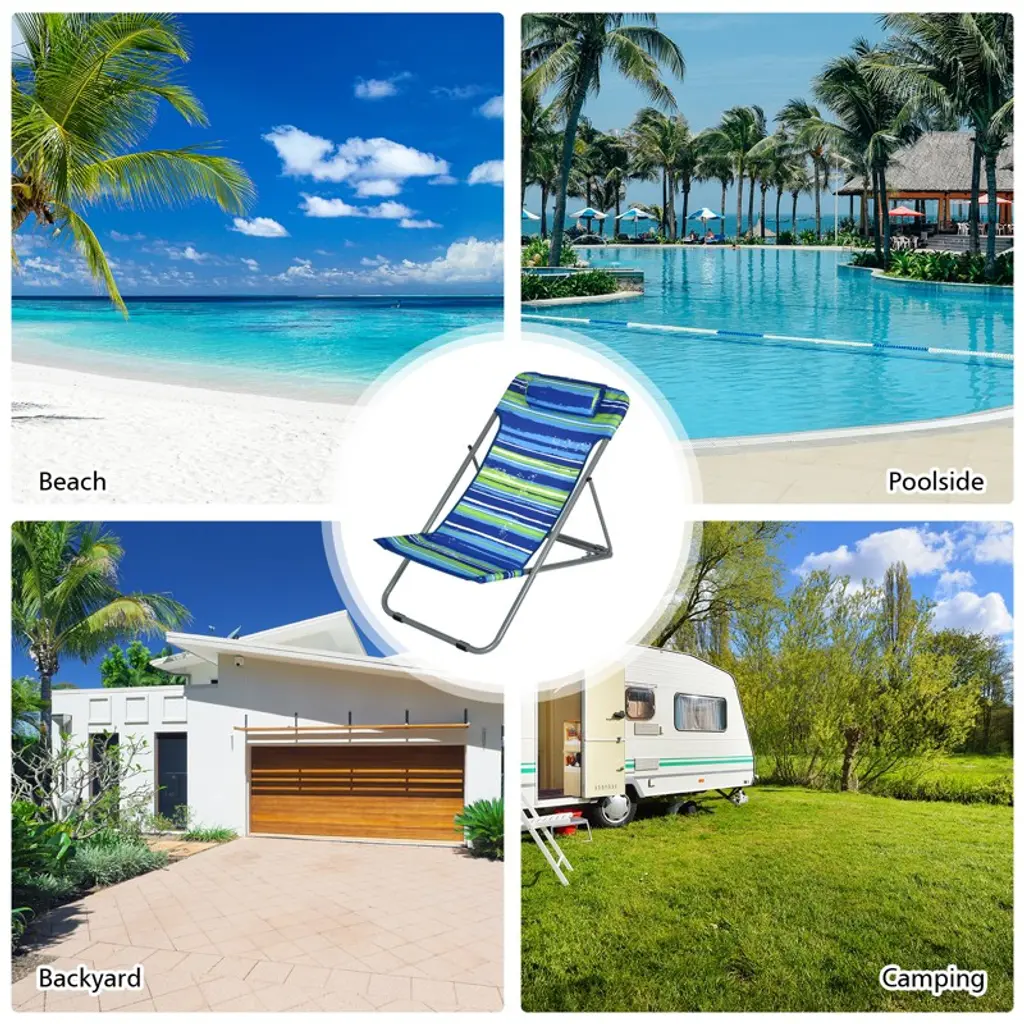 Tangkula 2 Pcs Beach Chair Lounger Reclining Folding Chair W/3-position Adjustable Backrest Blue