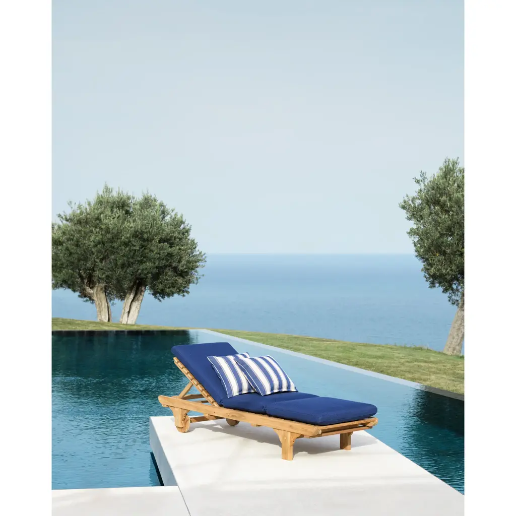 Indulge in luxurious sunbathing with the Teak Sun Lounger from Unopiu Chelsea. This elegant and linear sunlounger is crafted from solid teak with adjustable back and leg rests for ultimate comfort. The included cushion adds an extra touch of sophistication, making it the perfect addition to your outdoor space.