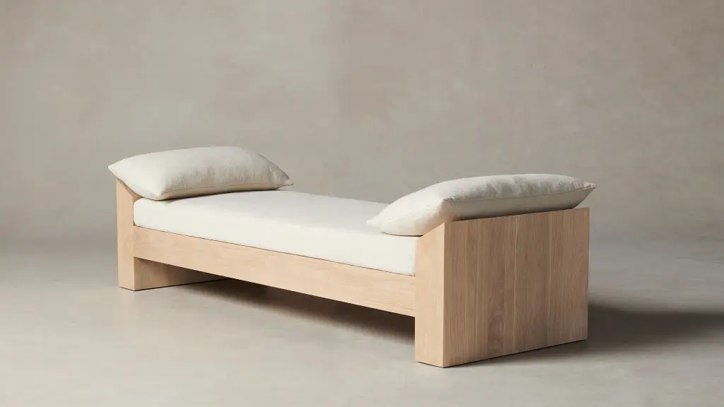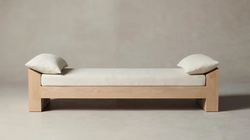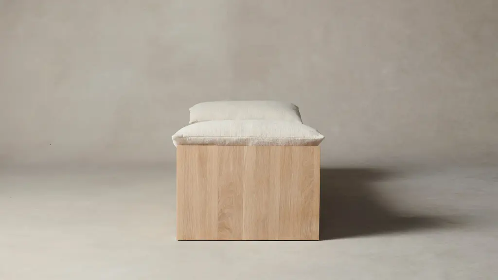 Inspired by artists’ lofts of the mid-century, The Montauk makes a strong architectural statement. Long and low to the ground, the Handwaxed oak frame cradles a tailored bench cushion; two down side pillows rest atop the angled arms.