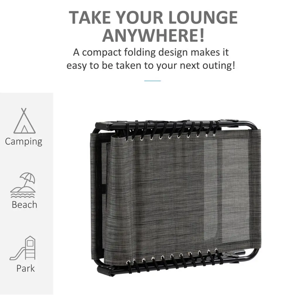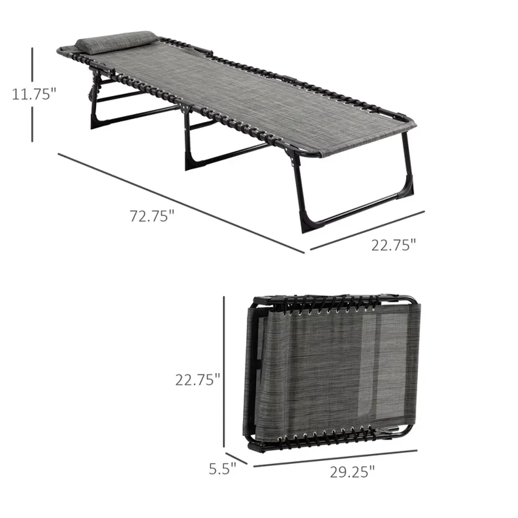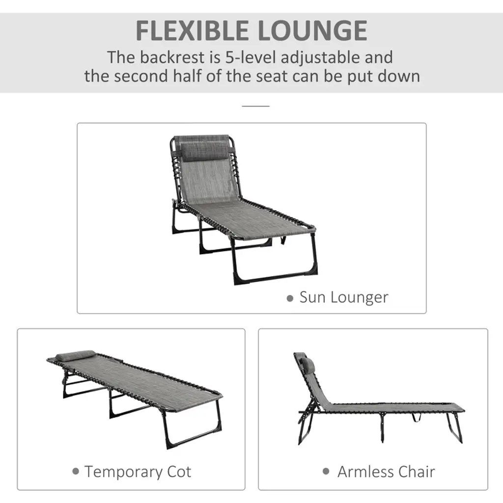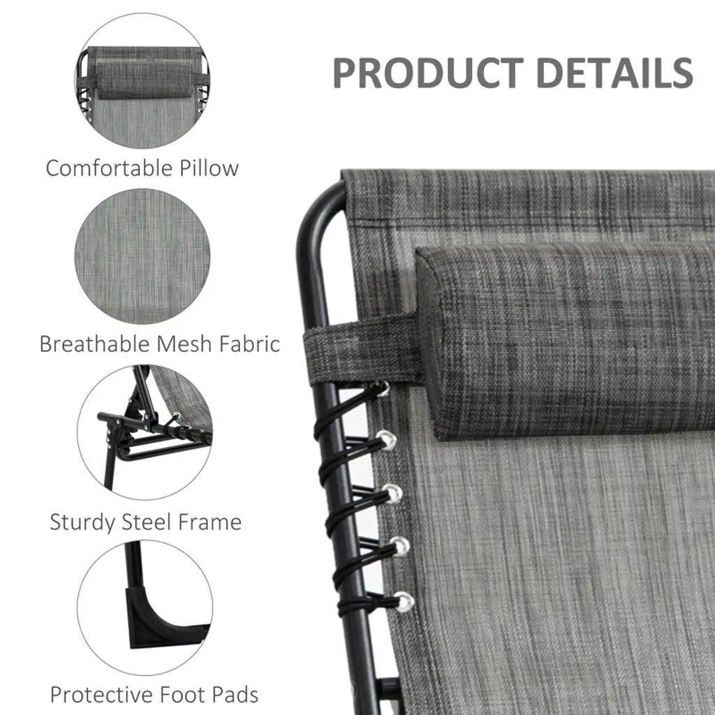 Tiramisubest Adjustable Reclining Chaise Lounge - Portable Folding Sun Lounger With Removable Pillow, Outdoor Camping Chair (Grey)