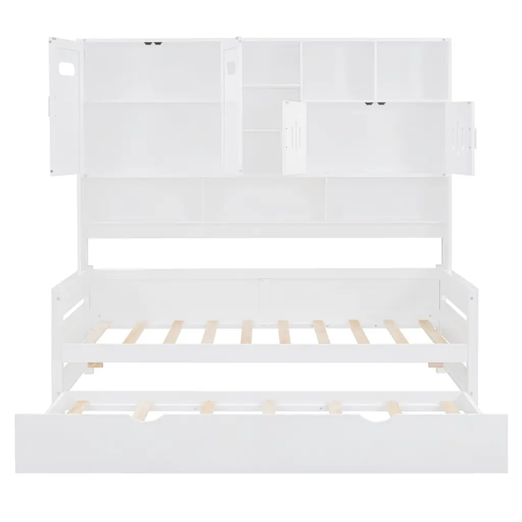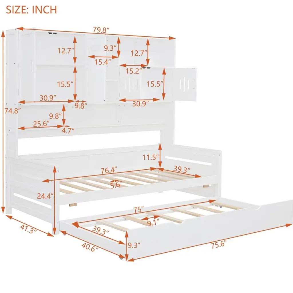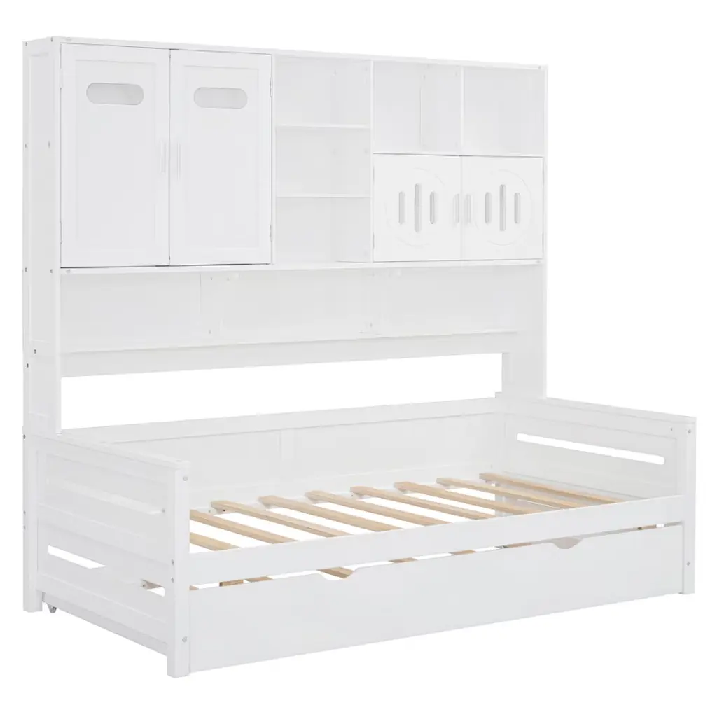 Crafted with premium wood, this white twin size wooden daybed with twin size trundle features: - Ergonomic design for optimal support - Space-saving solution for small rooms - Eco-friendly materials for sustainable living - Perfect for studio apartments