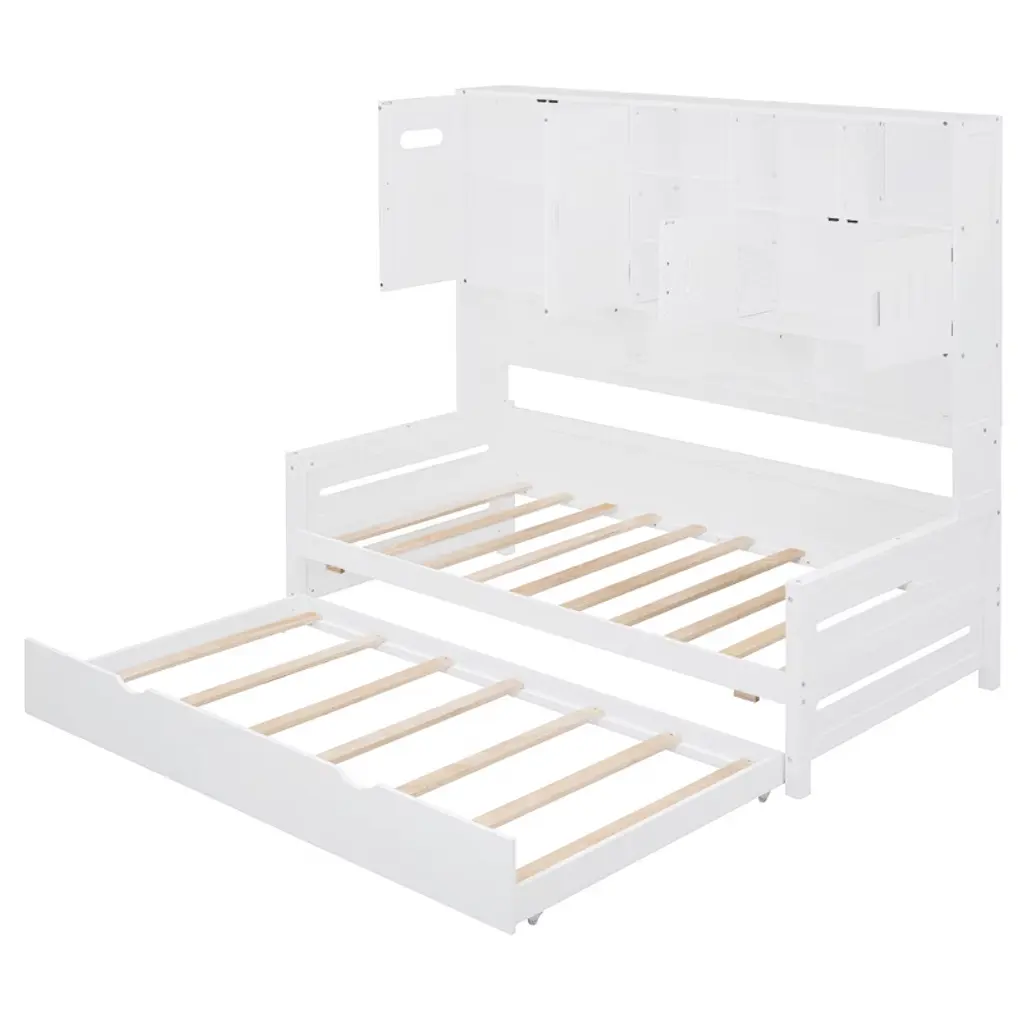 Tiramisubest Twin Size Wooden Daybed With Twin Size Trundle - White Wood Design