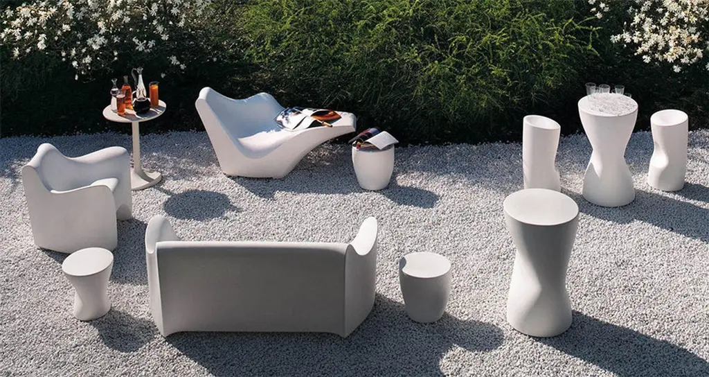 The Tokyo-Pop collection marks, in 2002, the debut on the international scene by Tokujin Yoshioka, now considered one of the masters of contemporary design. The sofa, the armchair and especially the day-bed and the stool, forget the banality of rotational molding to become sculptures. Unforgettable and unusual shapes.The Tokyo-Pop collection marks, in 2002, the debut on the international scene by Tokujin Yoshioka, now considered one of the masters of contemporary design.The Driade Tokyo Pop Daybed is made for relaxation. With a smooth, organic form reminiscent of the indoor La Chaise by the Eames's, this daybed is just as inviting for luxurious outdoor lounging. This sculptural design is made out of a single piece of rotation molded polyethylene plastic, making it exceedingly durable for long term outdoor use.