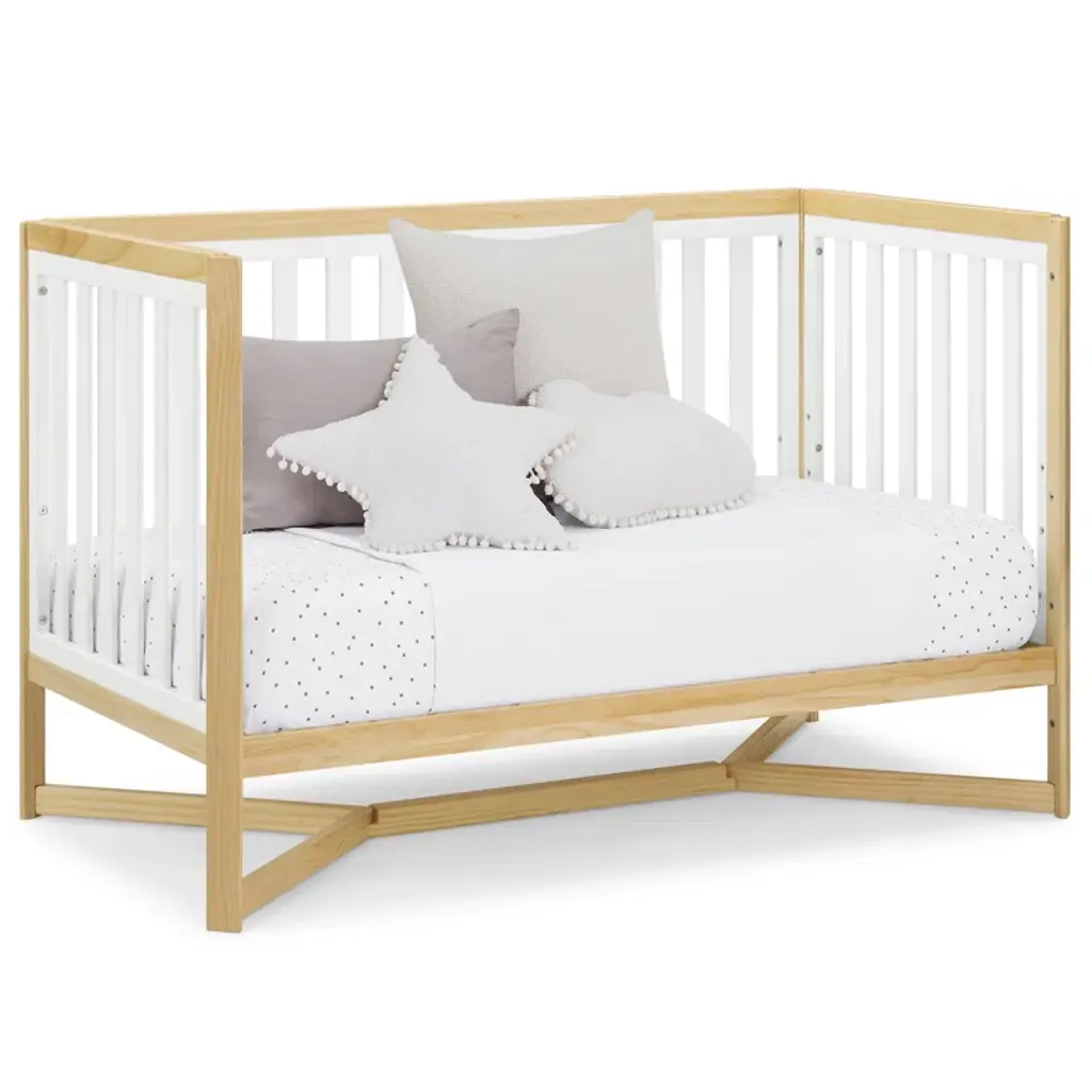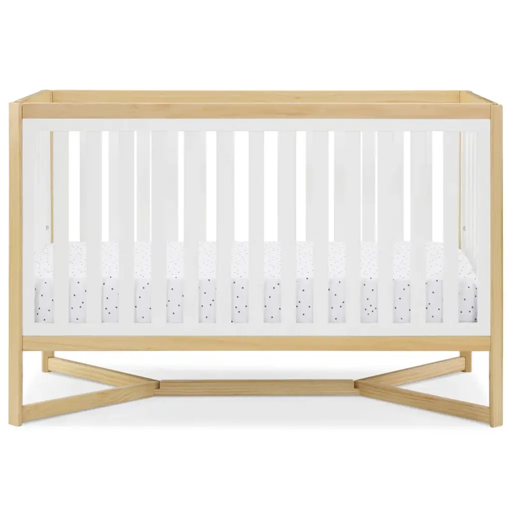 Designed to be the centerpiece of your nursery, this crib exudes contemporary cool. Featuring plenty of modern touches it boasts a sleek x-shaped base and airy slats. Crafted from strong and sturdy wood, this crib features three height levels and converts to a toddler bed, daybed, and full-size bed, making it the only bed your baby will ever need. Delta Children was founded around the idea of making safe, high-quality cribs affordable for all families. That's why all Delta Children cribs are JPMA-certified and are tested above and beyond industry standards.