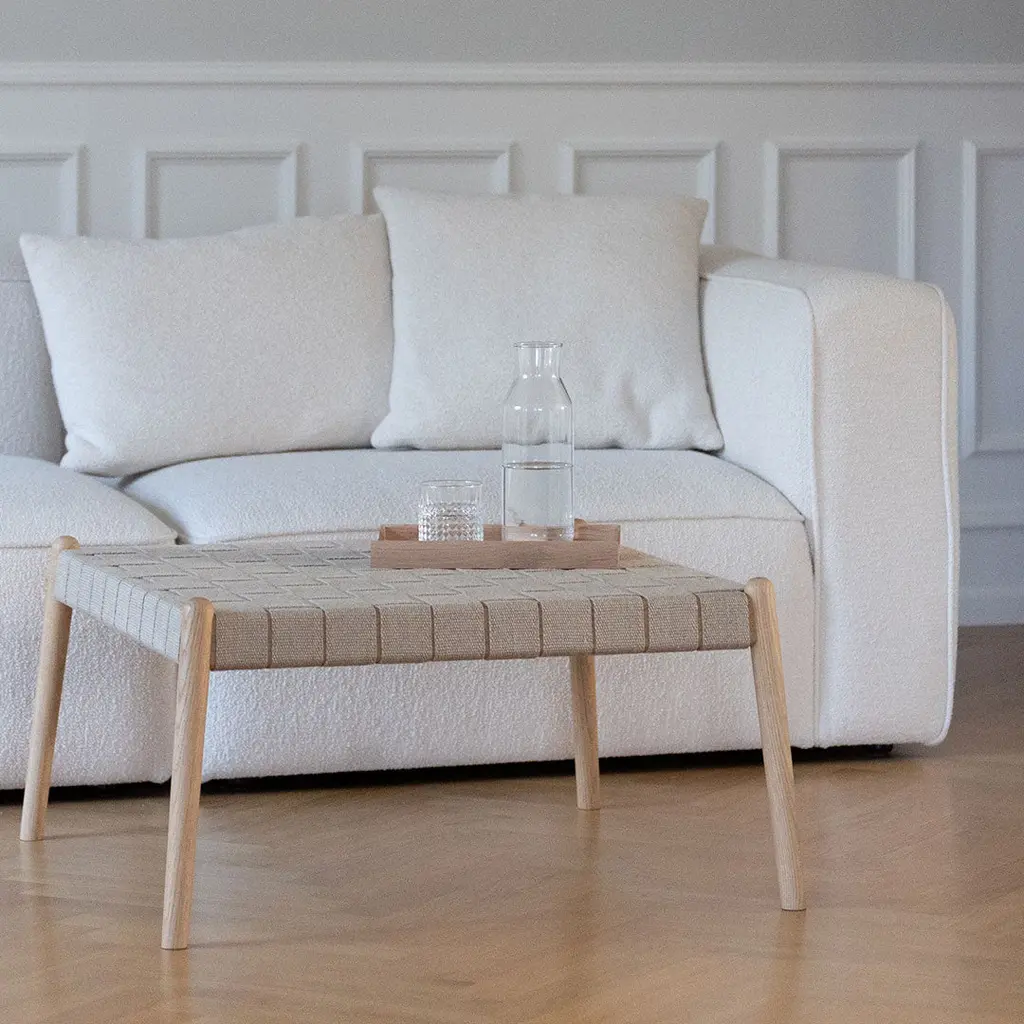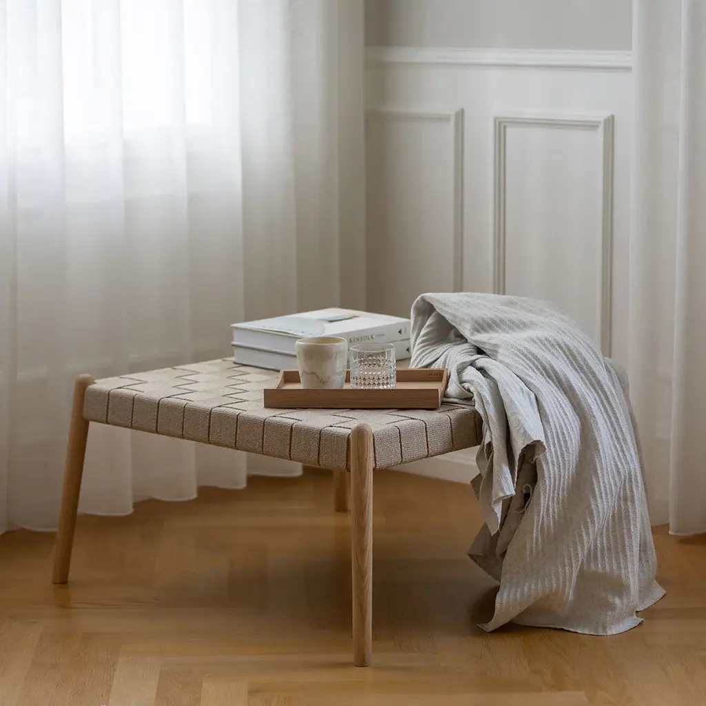 The UMI series is designed by the Norwegian designer Jennifer Cena. The series combines elegance with authenticity and sustainability, which appeals to modern aesthetics and values. UMI means sea in Japanese, which has strong references to the Nordic and simple design. The natural beauty of the oak and the structure of the natural linen belt fit into both classic, minimalist and maximalist interior themes. The artisanal care and attention put into shaping and working the oak results in unique details and a handcrafted quality and finish that differs from mass-produced furniture. The UMI series in solid oak consists of 6 pieces of seating furniture - including stools, benches and a daybed, and there is guaranteed to be one that fits perfectly into your personal interior design. You can use the UMI series in the entrance hall, in the bedroom, in the dressing room, along the dining table, in the bathroom or in other places where an extra seat is needed or where you need a beautiful detail. The unique daybed can be used both as a bench or for overnight guests. If you add a few large, attractive cushions, it can also be transformed into a nice little sofa or a sunbed on the covered terrace or in an orangery.