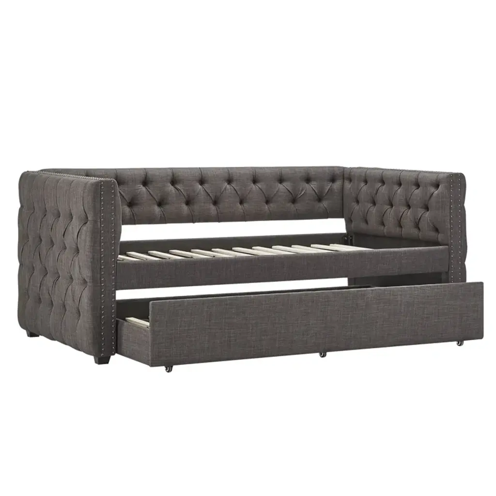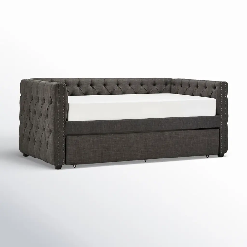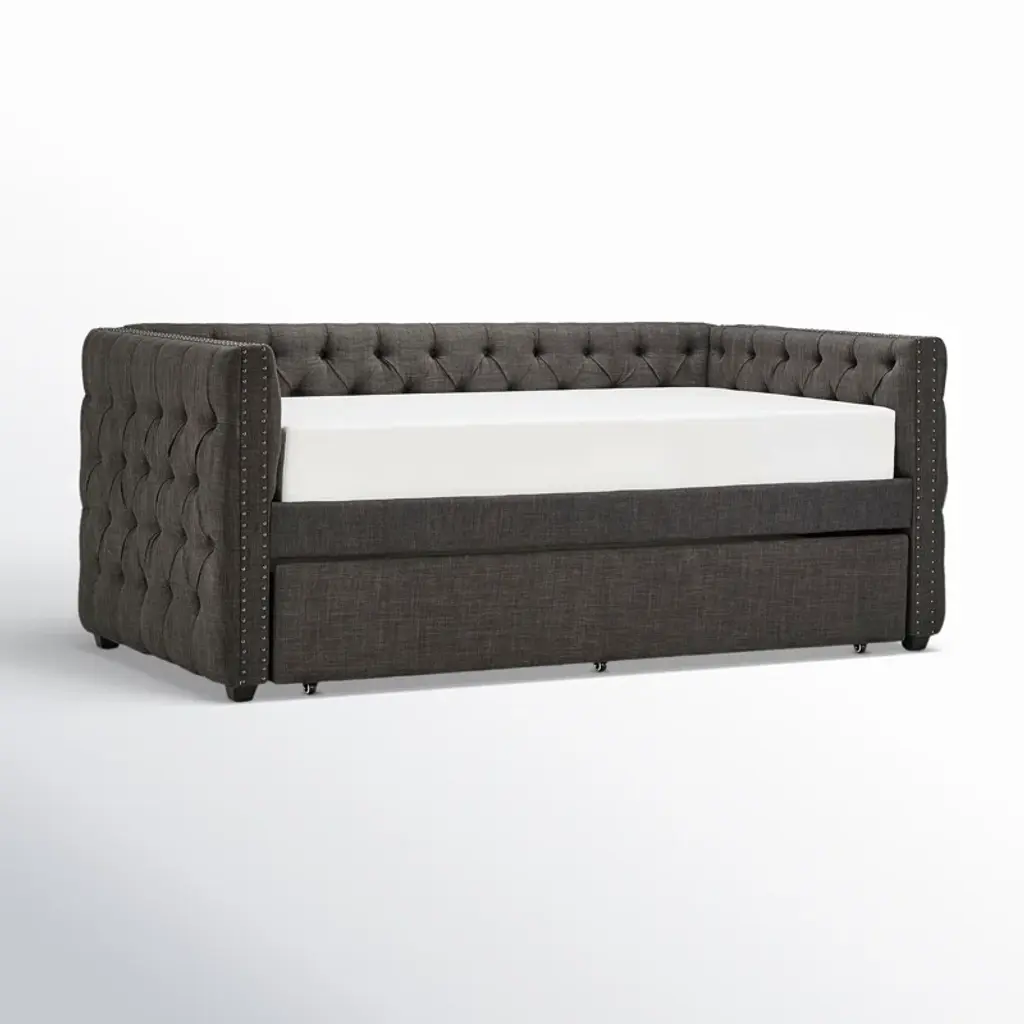 Eager to entertain but no guest space? Make the most of your square footage in any room with this versatile daybed, doubling as a place to sit and a spot to snooze. Neutral-hued linen upholstery envelops this daybed for an approachable and understated look, while button-tufted details and nailhead trim round out the design with a dash of distinction. Full assembly is required.