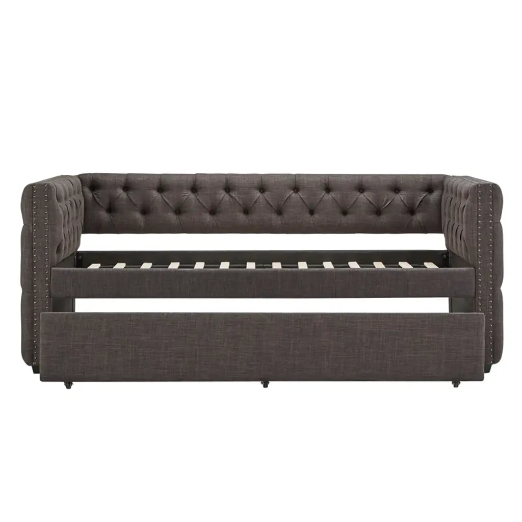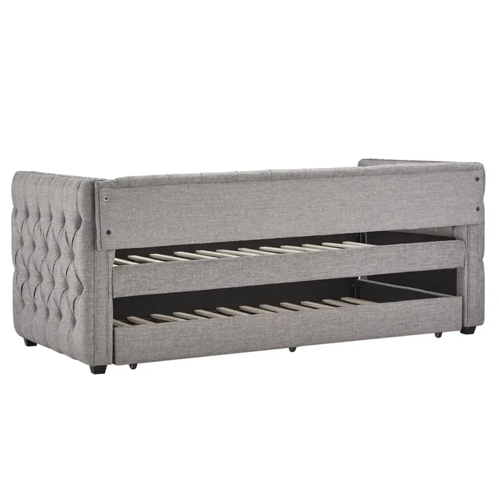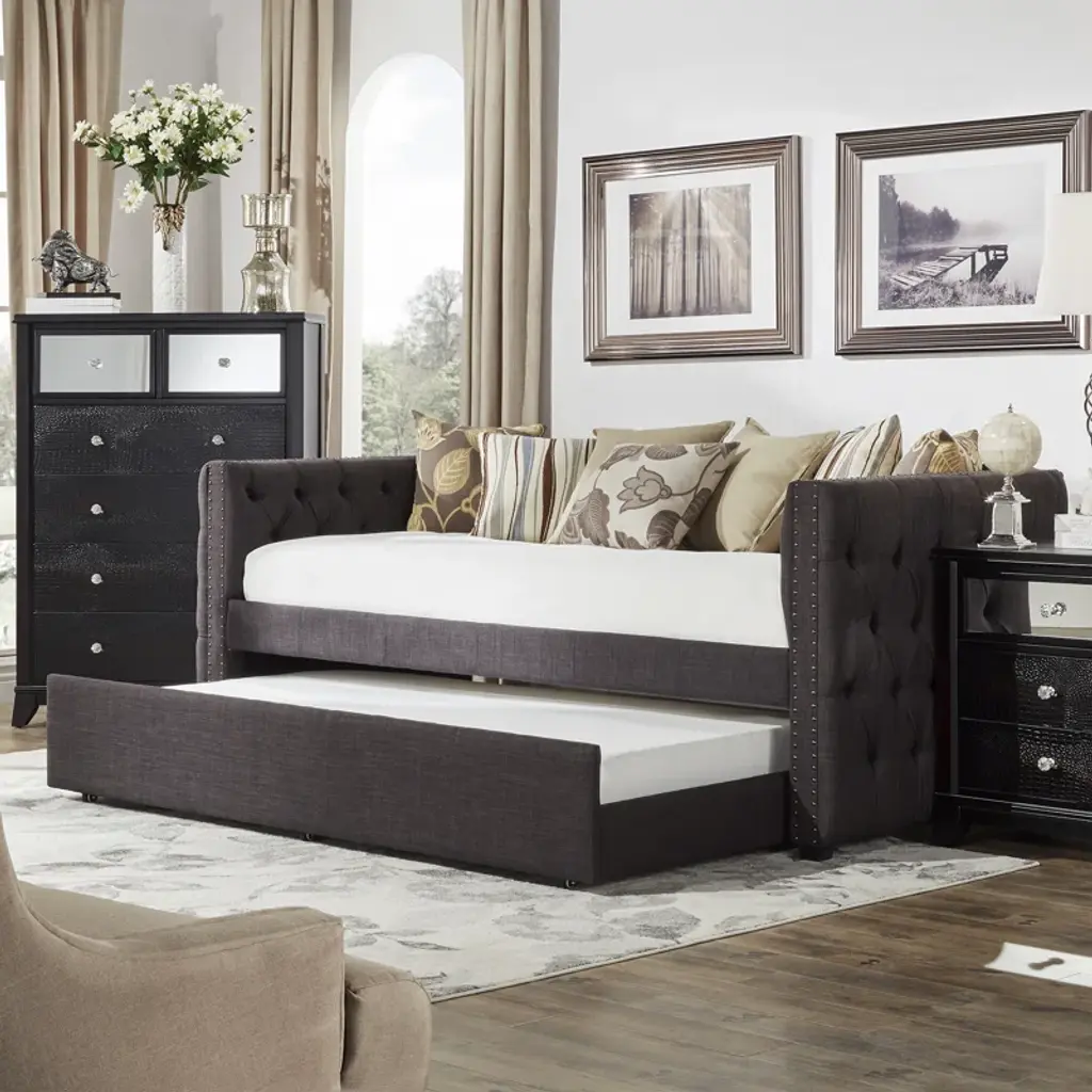 Eager to entertain but no guest space? Make the most of your square footage in any room with this versatile daybed, doubling as a place to sit and a spot to snooze. Neutral-hued linen upholstery envelops this daybed for an approachable and understated look, while button-tufted details and nailhead trim round out the design with a dash of distinction. Full assembly is required.