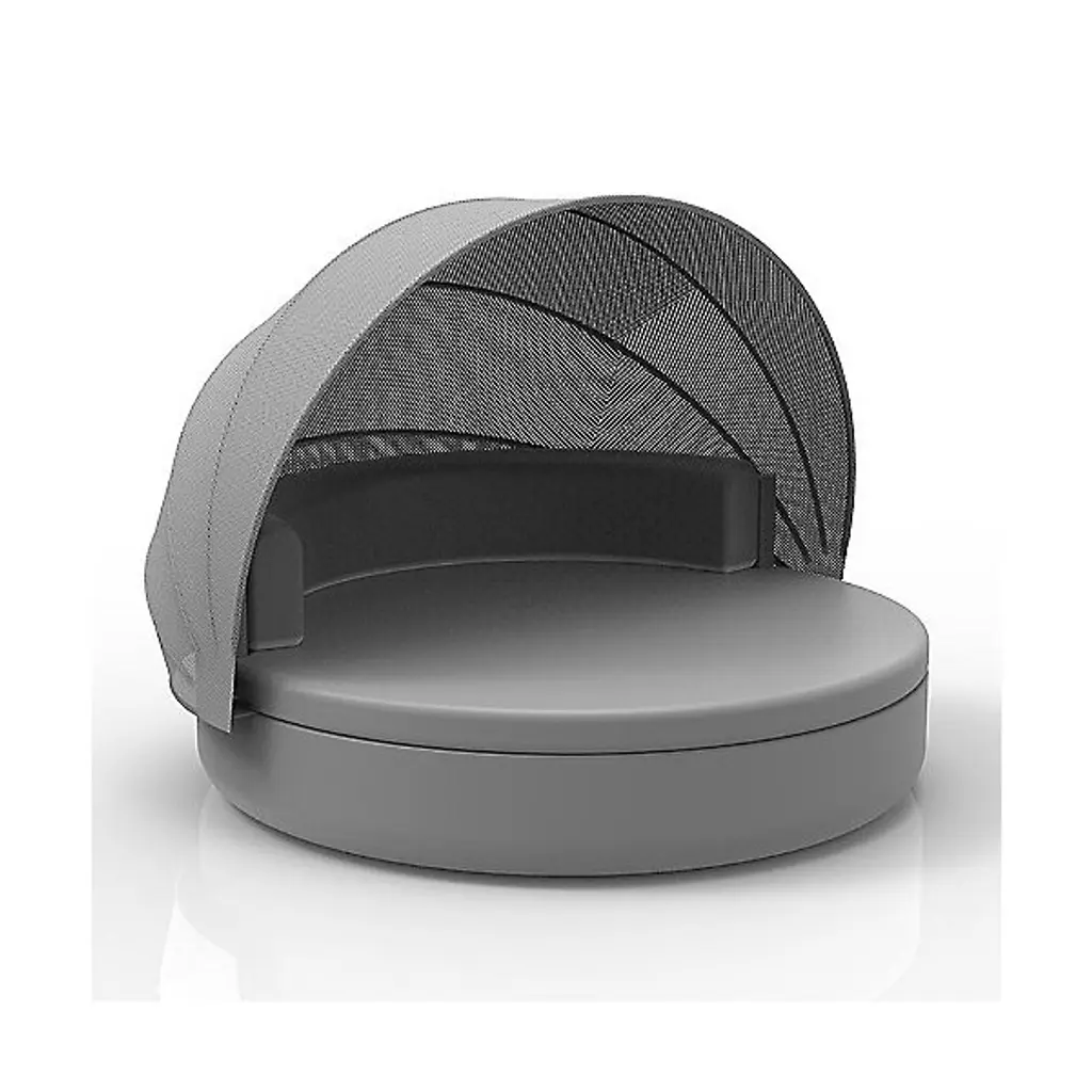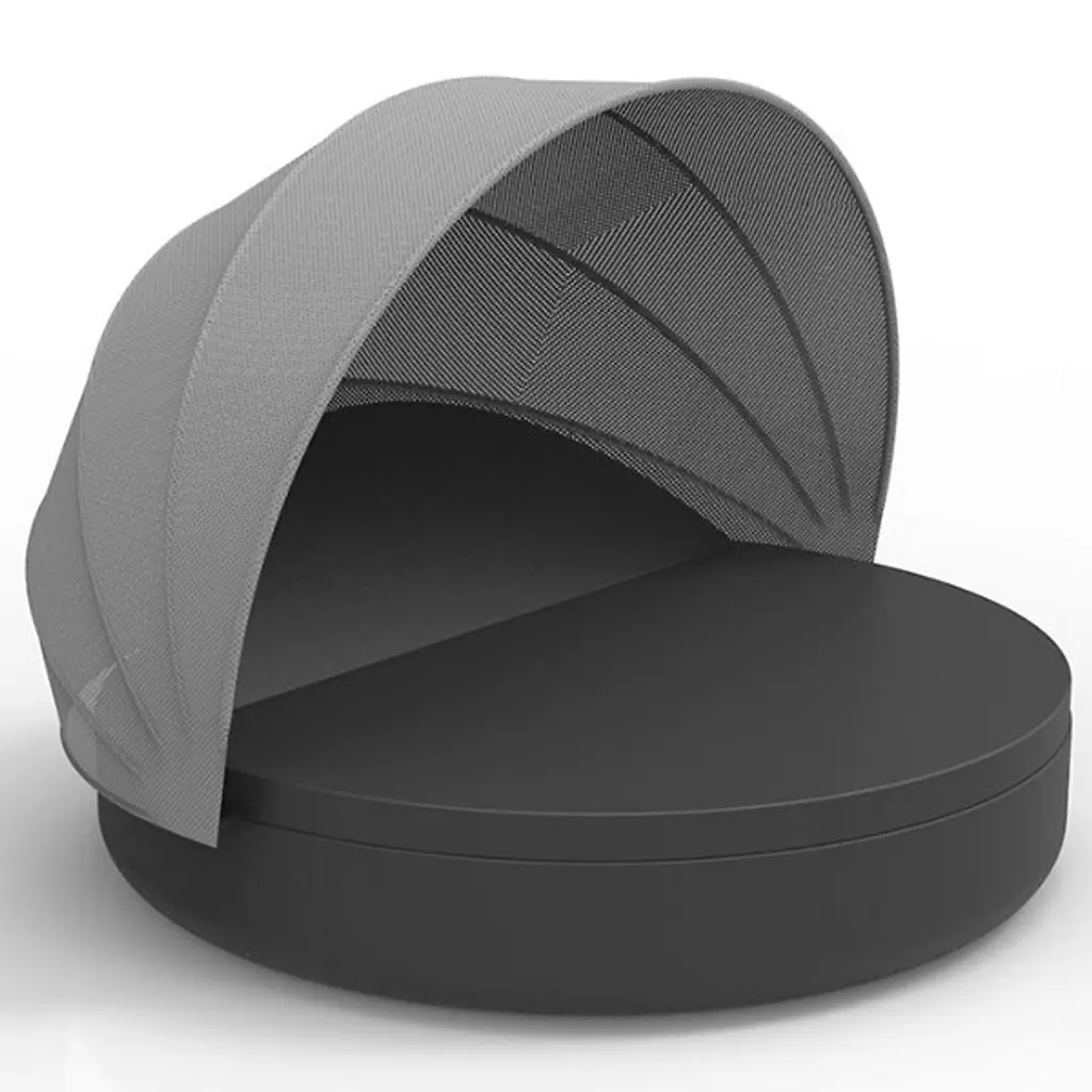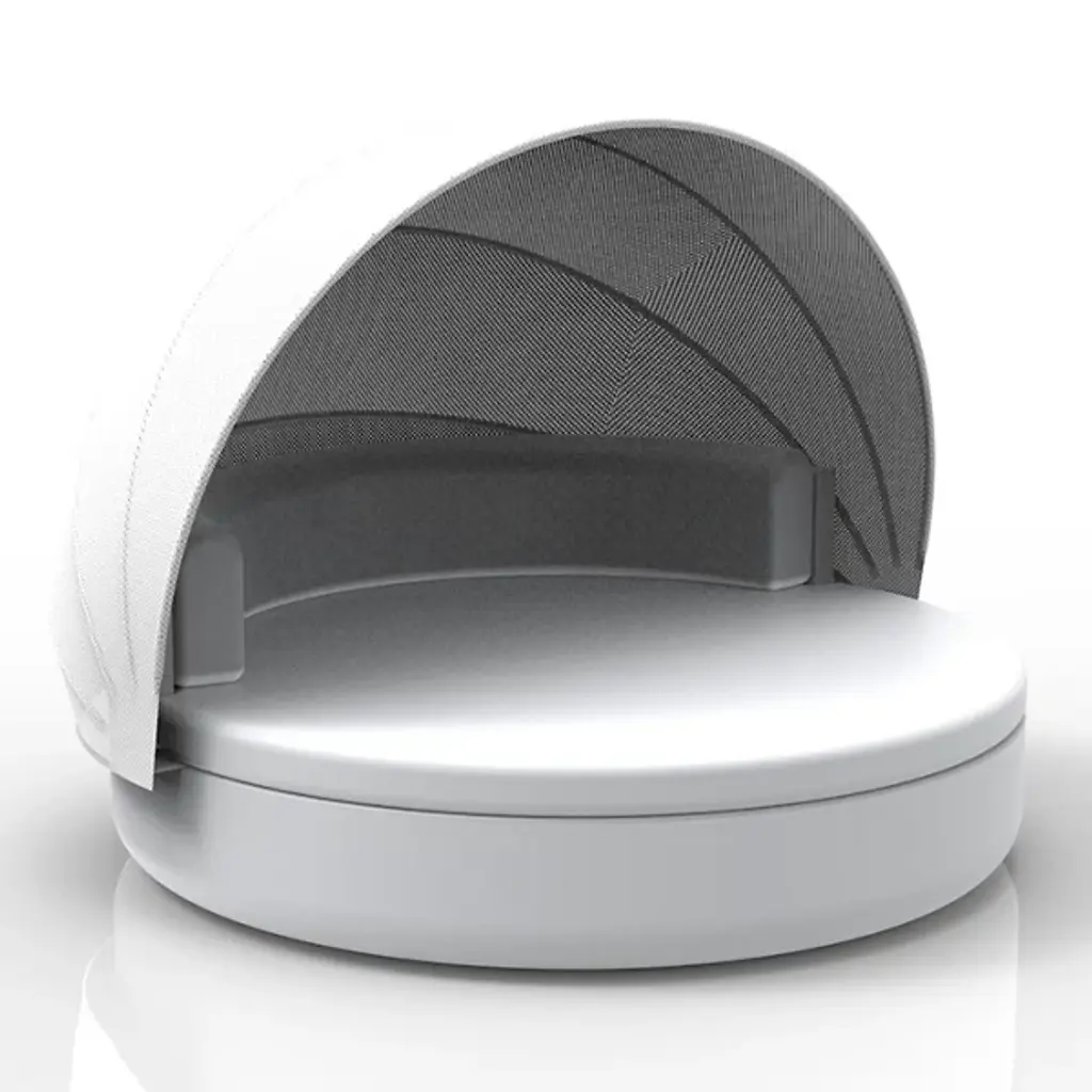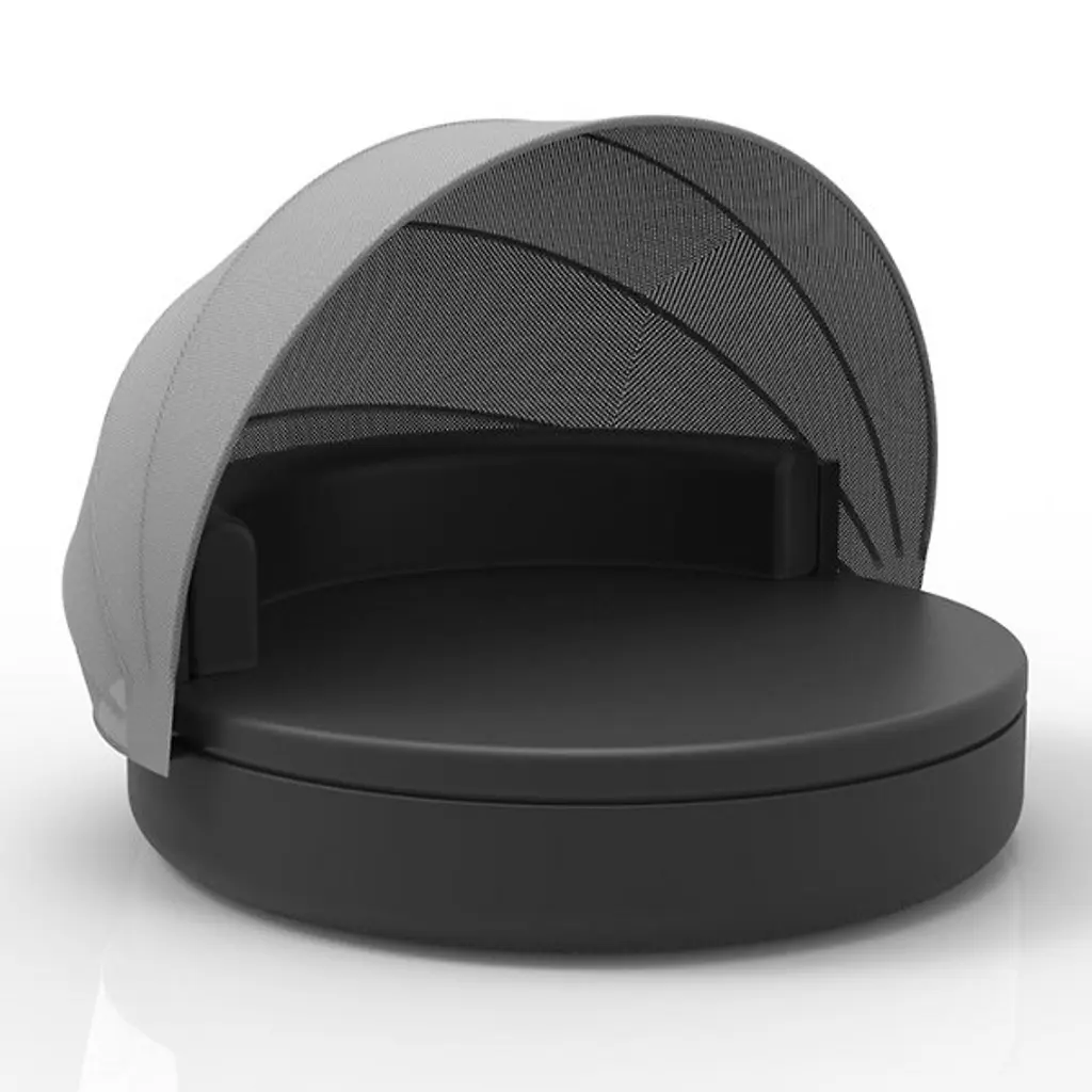 Designed by Ramon Esteve for Vondom, Vela Daybed with Folding Canopy represents the future of modern outdoor daybeds. Curated with tranquil architectural forms in mind and essential elements needed to live outdoors, Vela provides an intimate retreat. As Vela is in use, the new sunroof protects the lounger from overexposure of uv-rays, and wind, while providing privacy during their lounge or sleep. The modern outdoor lounge experience awaits by the poolside or at a resort.