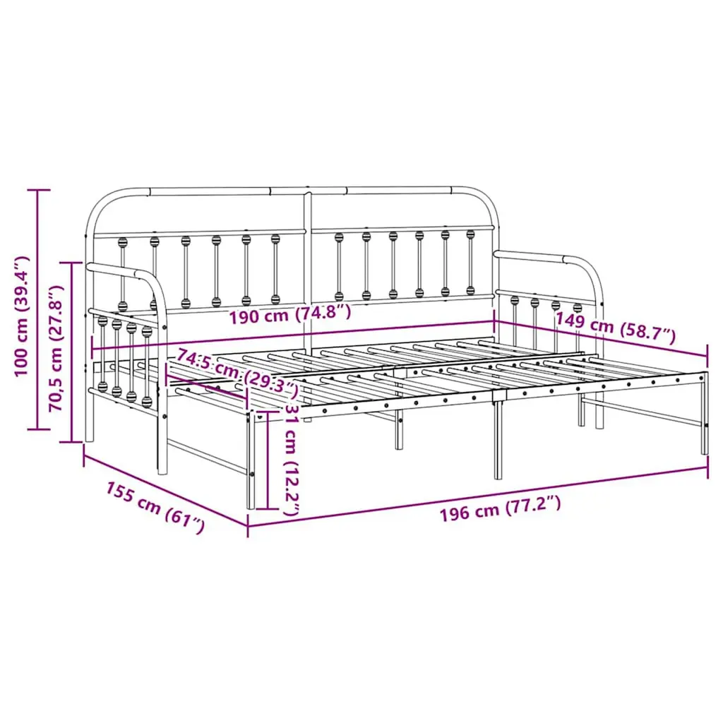 This Rectangular Metal Daybed is a modern piece that fits right in with today’s bedroom . Made from solid steel with a matte powder-coated finish, it looks classy and lasts a long time. Its smooth surface matches any décor, creating a welcoming space for relaxing or hosting overnight guests. Whether it’s tucked away in a corner or in full view, this daybed adds a touch of elegance while being super handy for your home. Materials: Made entirely from high-quality steel, this daybed is strong and steady, ensuring it’s a lasting part of your home setup. The matte powder-coated finish adds extra durability, protecting against wear and tear. Together, these materials make it both resilient and good-looking.Included Components: The frame comes with a finished back, a fixed slatted frame, and robust square legs, all built from steel, so you get solid support. These features work together to give you practical reliability and a classy look that enhances any bedroom vibe.Features / Function / Design: Thanks to its non-scratch design, this daybed keeps your floors safe, making it great for any surface. Its modern look easily aligns with the latest styles, characterized by sleek lines and thoughtful proportions, providing an attractive sleeping option.Recommended Uses: Ideal for indoor settings, this daybed is perfect for bedrooms or flexible spaces. It's great as a comfortable lounging area during the day and transforms into a cozy bed for guests at night—maximizing your room’s potential.Care & Maintenance: To keep it looking sharp, steer clear of harsh chemicals and scrubbing tools. Just a quick wipe down with a damp cloth is all it takes to keep this daybed neat and tidy, ensuring it stays looking good without fuss.