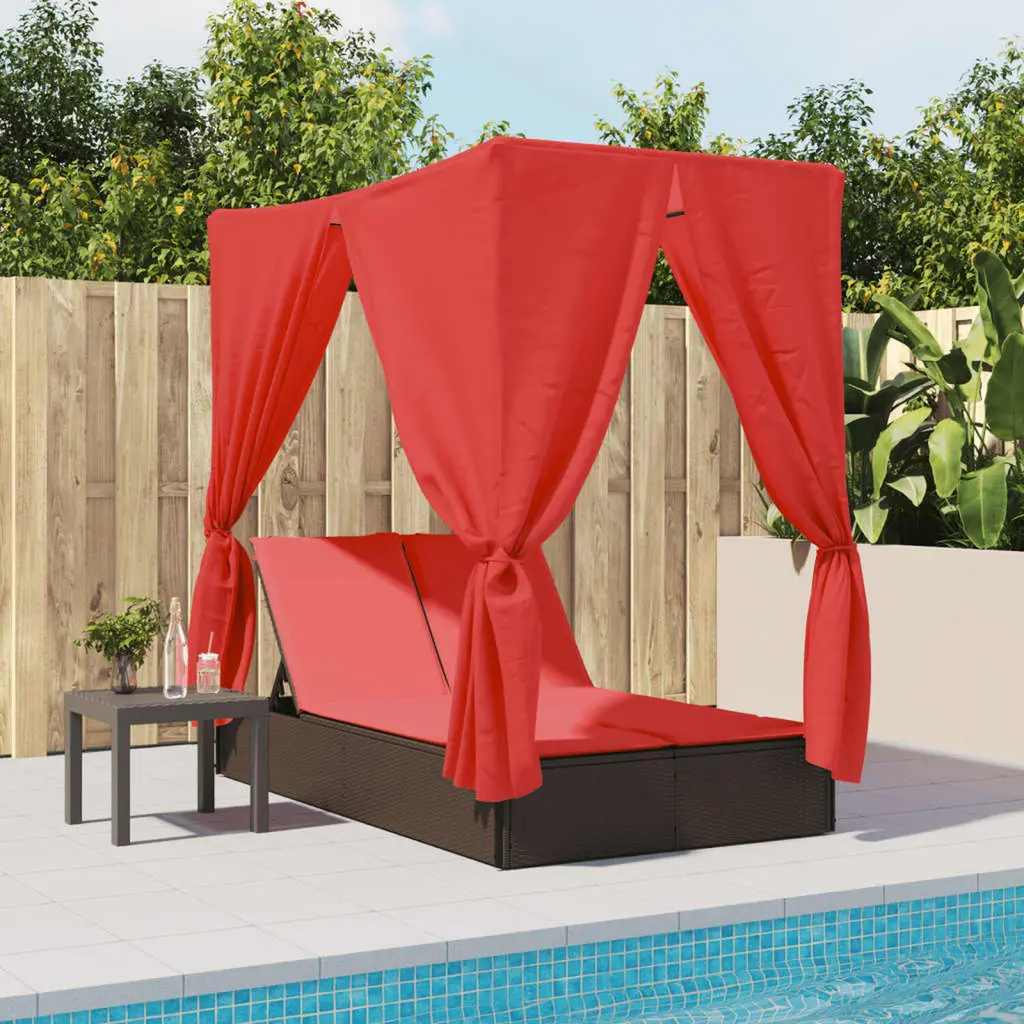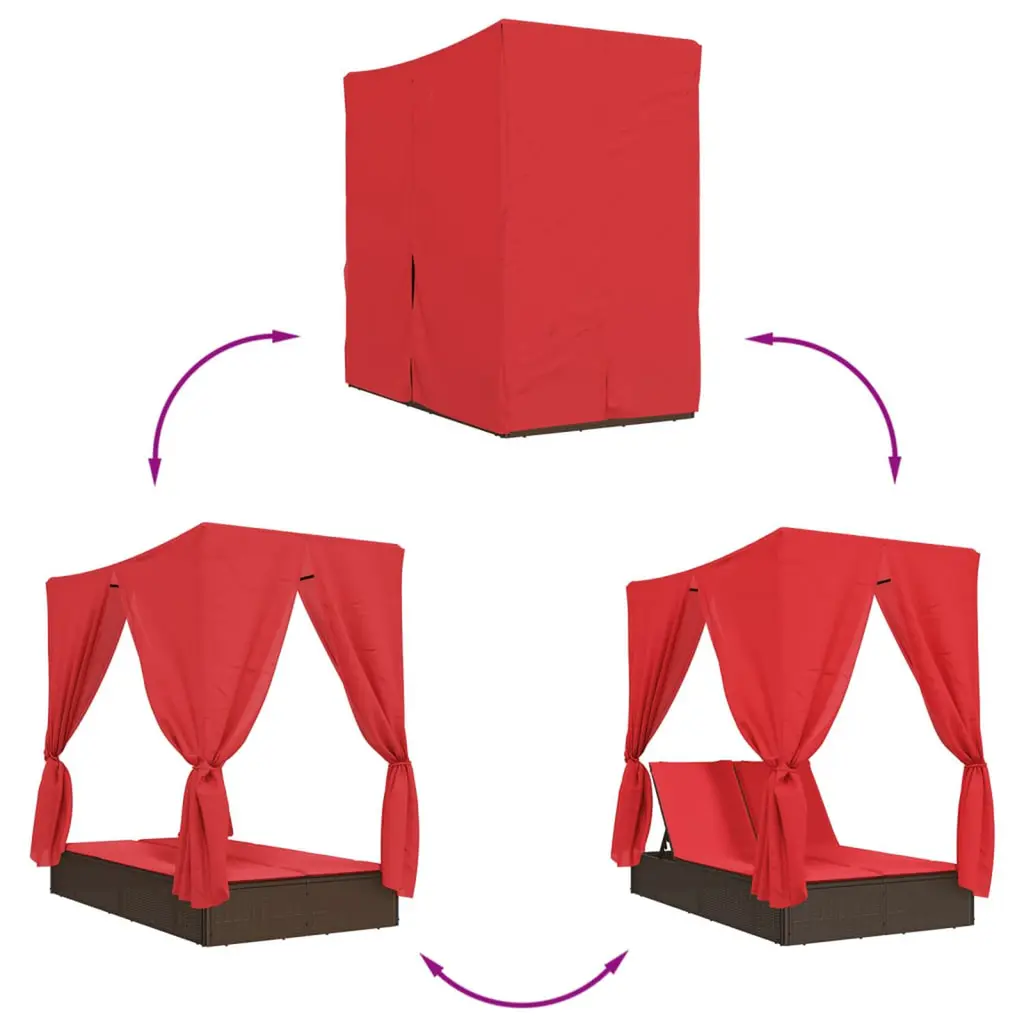 Vidaxl Double Patio Sun Lounger With Roof And Curtains Brown Poly Rattan