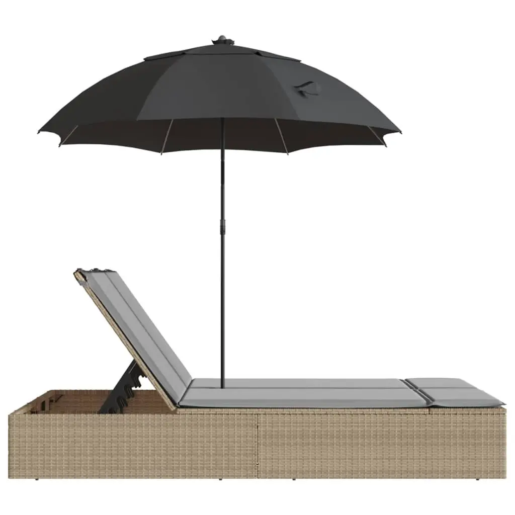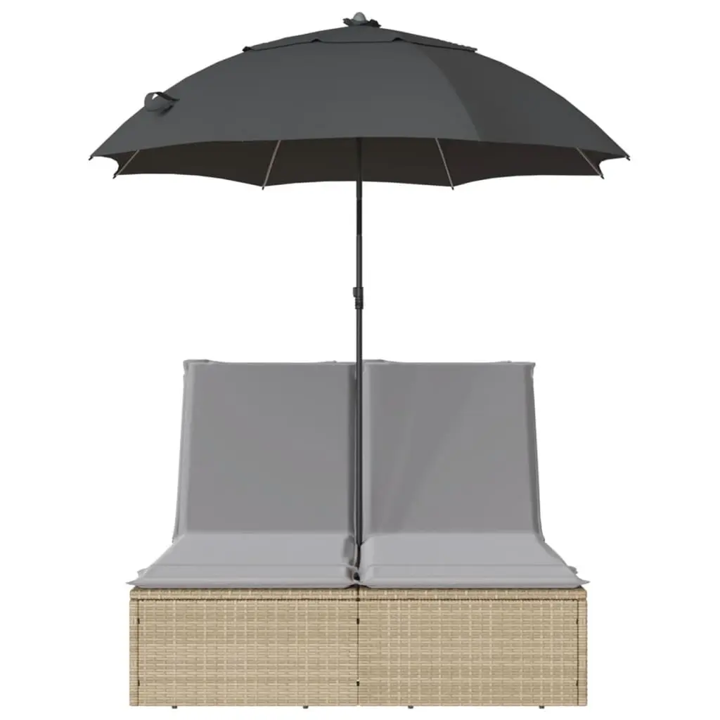 Vidaxl Double Sun Lounger Beige Pe Rattan, Powder-Coated Steel Large