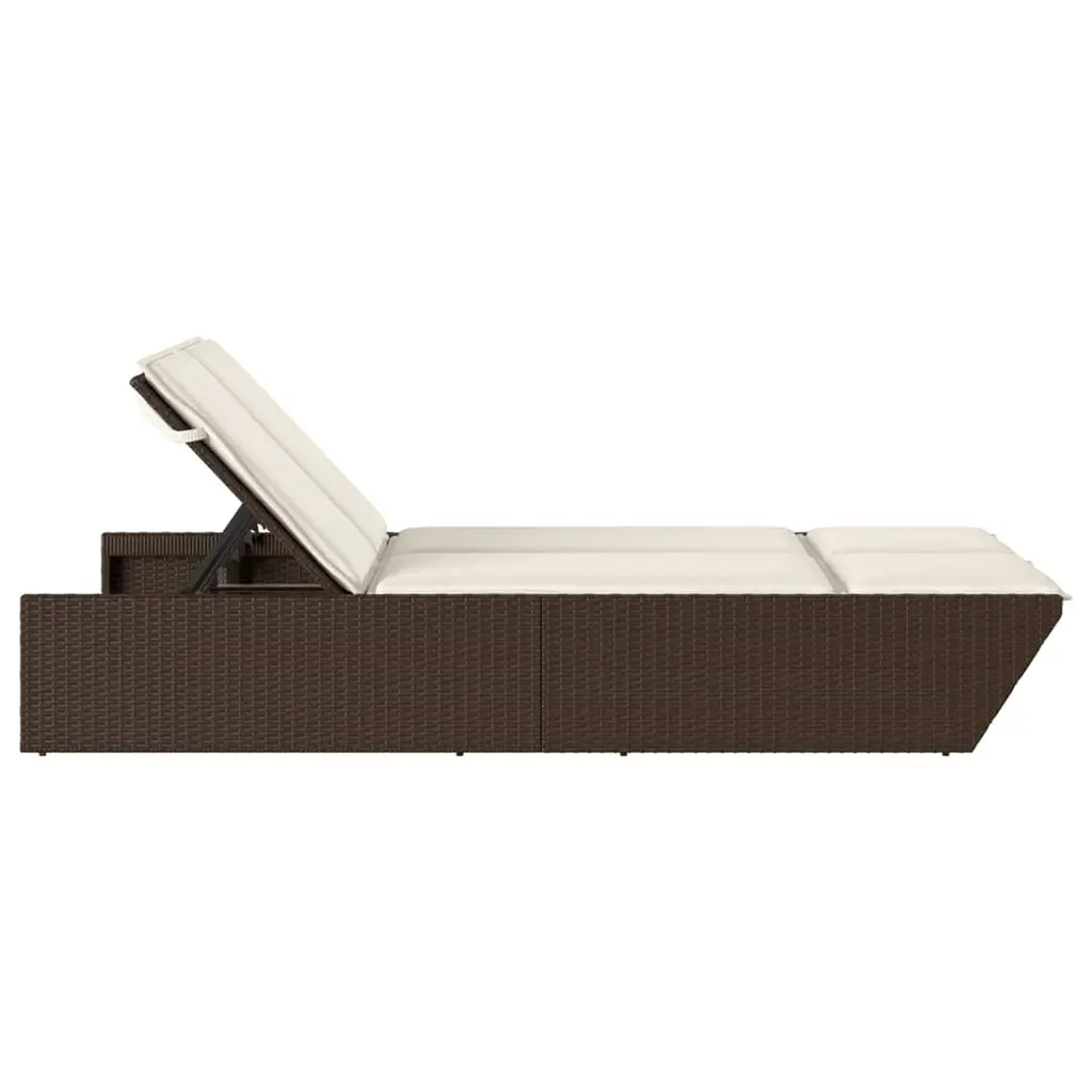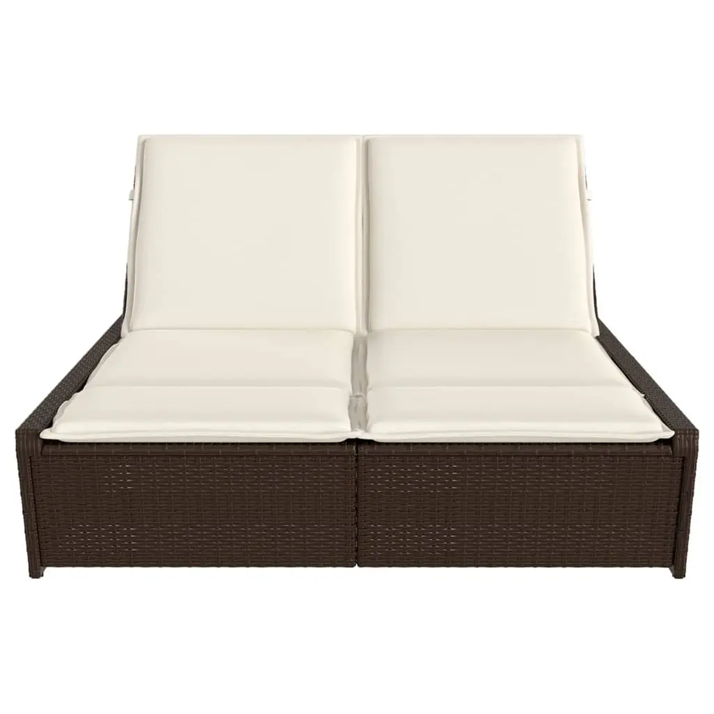 Vidaxl Double Sun Lounger Brown Pe Rattan, Powder-Coated Steel Double