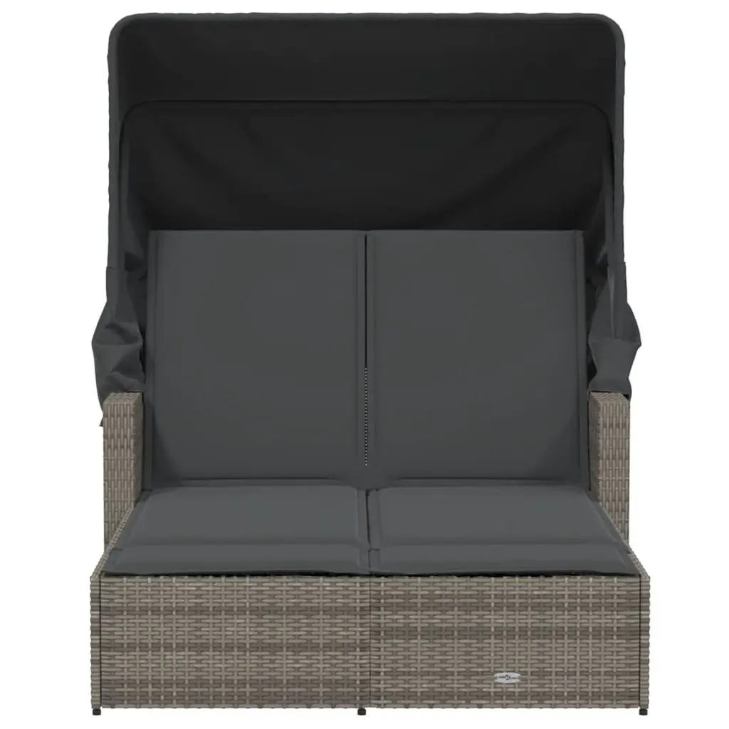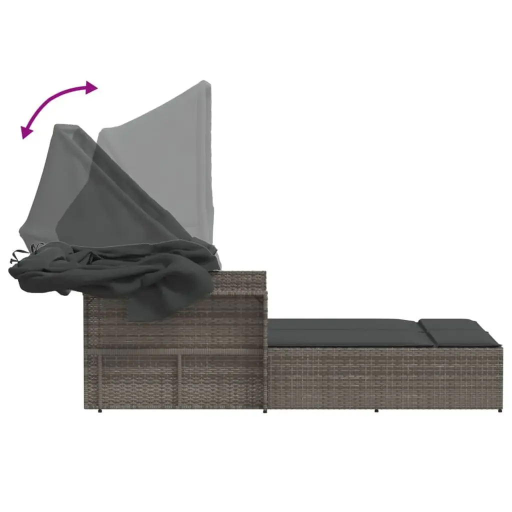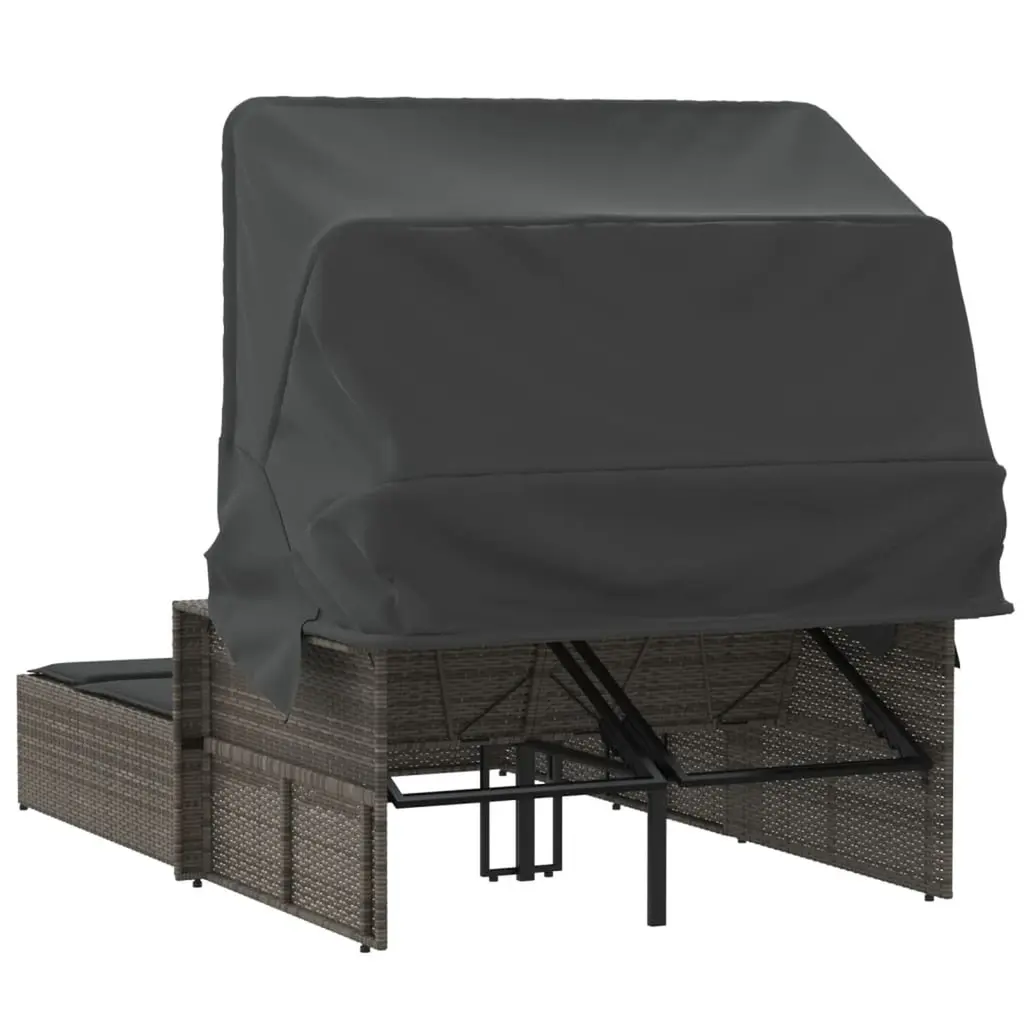 Vidaxl Double Sun Lounger Grey Pe Rattan Double Adjustable Armrests