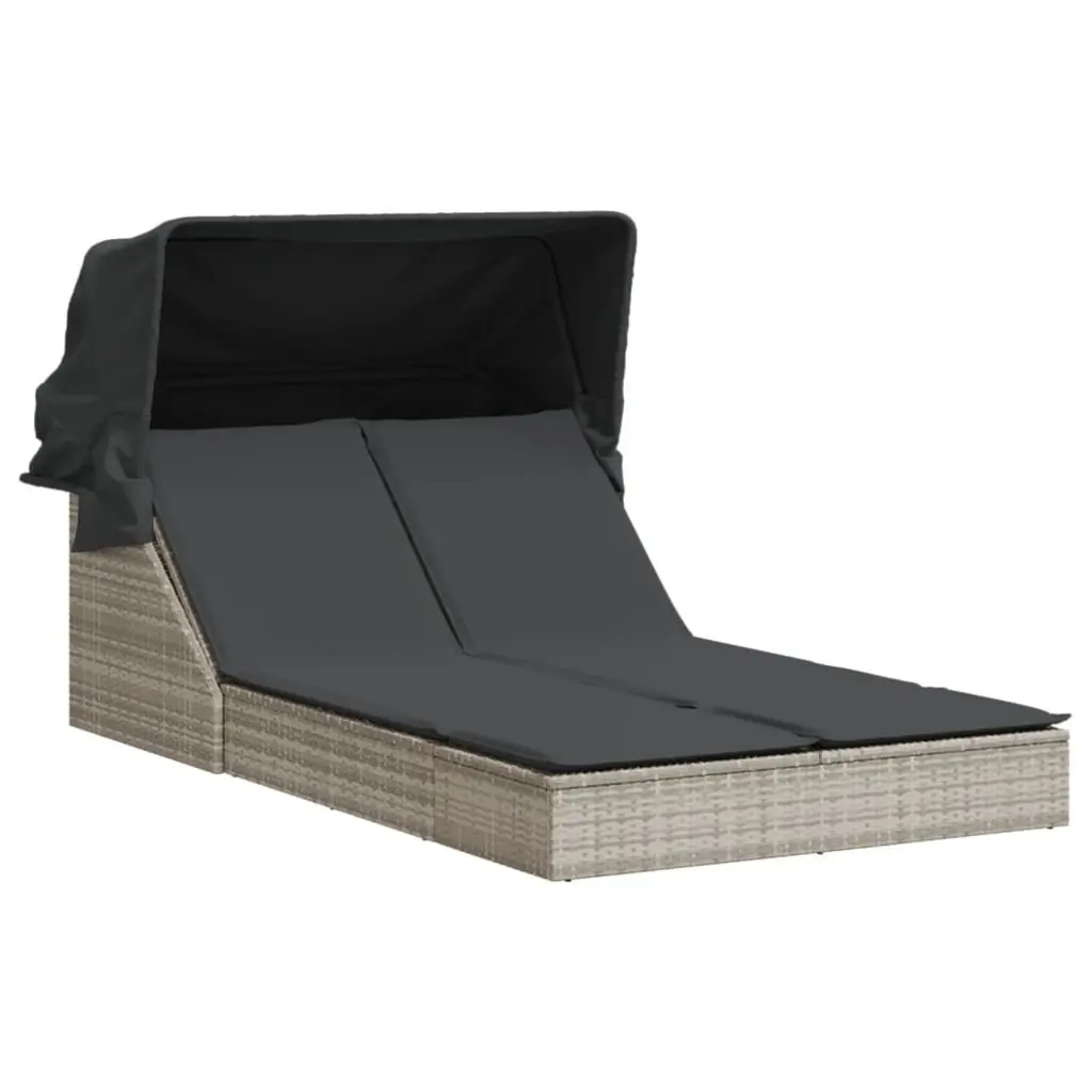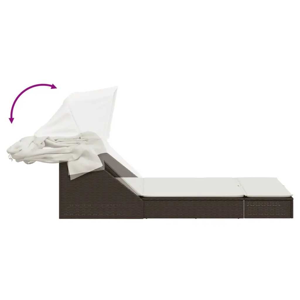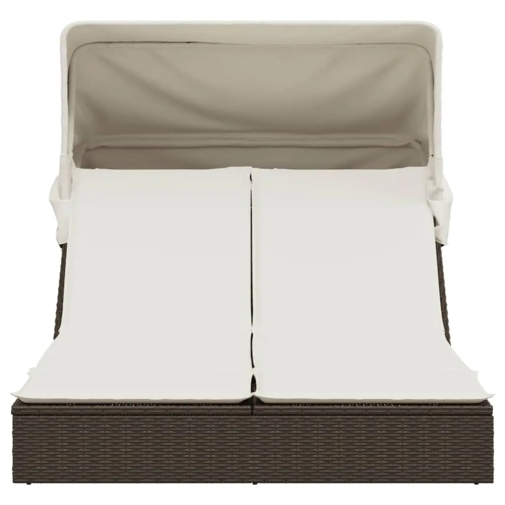 Vidaxl Double Sun Lounger With Canopy And Cushions Brown Poly Rattan